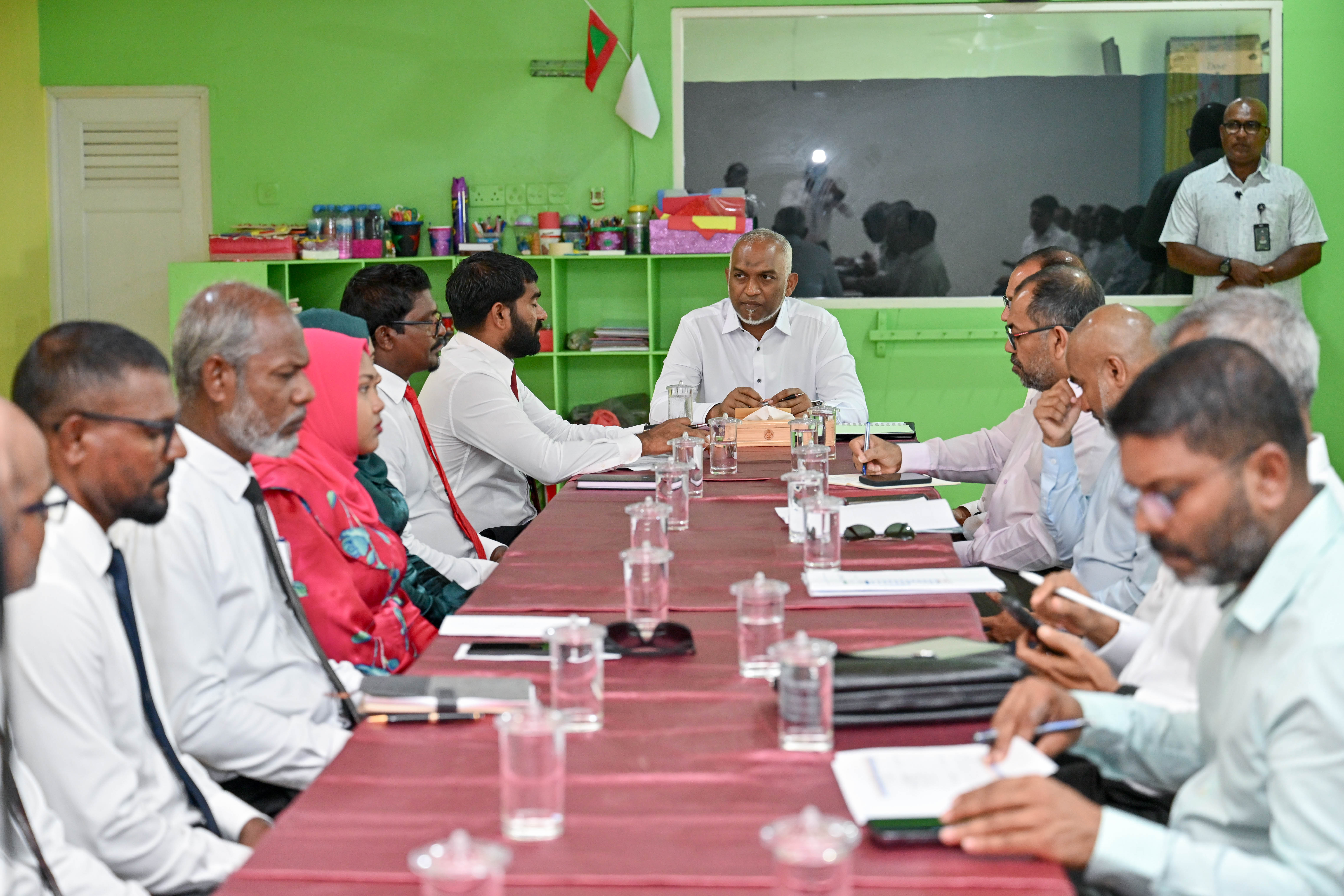 President Dr. Mohamed Muizzu met with members of the B. Kamadhoo Island Council, the Women’s Development Committee, and local institution heads at Kamadhoo Preschool to discuss the island’s priority development issues.