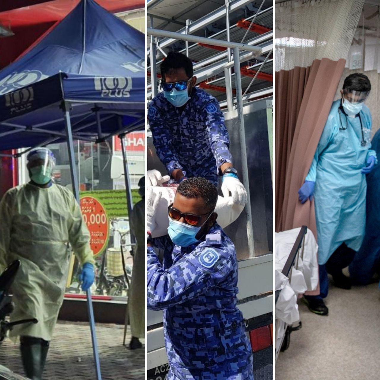 ކޯވިޑް-19 ގެ ރޯގާބަލިމަޑު ކަމުގައި އެންމެ ބޮޑު ބުރައެއް އުފަލާ އެންމެ ނުރައްކާތެރި ހާލަތުގައި މަސައްކަތްކުރާ ބަޔަކީ ޞިއްހީ އެހީތެރިންނެވެ. ޑޮކްޓަރުންނާއި ނަރުހުންނާއި ޞިއްޙީ ޚިދުމަތުގައި އެހީތެރިކަން ފޯރުކޮށްދޭ އެހެނިހެން މަސައްކަތްތެރީންނެވެ. މީގެއިތުރުން ރާއްޖޭގައި ފުލުހުންނާއި ސިފައިންވެސް އެދަނީ މިމަސައްކަތުގައި އެންމެ ކުރީ ސަފުގައި ހަރަކާތްތެރިވަމުންނެވެ. ބައްޔަށް ޝައްކުވާ މީހުންގެ ގައިން ސާމްޕަލް ނަގަނީ ޞިއްޙީ އެހީތެރިންނެވެ. ބަލި ޖެހޭ މީހުންނަށް ފަރުވާ ދިނުމުގައިވެސް ޑޮކްޓަރުންނާއި ނަރުހުންނާއި އެމީހުންގެ ސަޕޯޓް ސްޓާފުންނެވެ. ބަލި މީހުން ކަރަންޓީނާއި އައިސޮލޭޝަނަށް ގެނަދިއުމުގައިވެސް ޞިއްޙީ އެހީތެރިންނާއެކު ސަލާމަތީ ބާރުތަކުން ހަރަކާތްތެރިވަމުން އެގެންދަނީވެސް ހަމަ ފުރާނަ އަތްމައްޗަށް ލައިގެންނެވެ.
