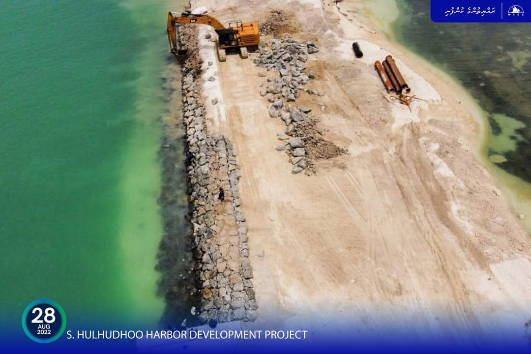 ސ. ހުޅުދޫ ބަނދަރު ތަރައްޤީ ކުރުމުގެ މަޝްރޫޢުގައި ހާބަރ ބްރިޖް ހެދުމާއި ބޭރުތޮށިލުމުގެ މަސައްކަތް ނިމިފައިވާކަމަށް މޯލްޑިވްސް ޓްރާންސްޕޯޓް އެންޑް ކޮންޓްރެކްޓިންގ ކޮމްޕެނީ އެމްޓީސީސީން ހާމަކޮށްފިއެވެ.