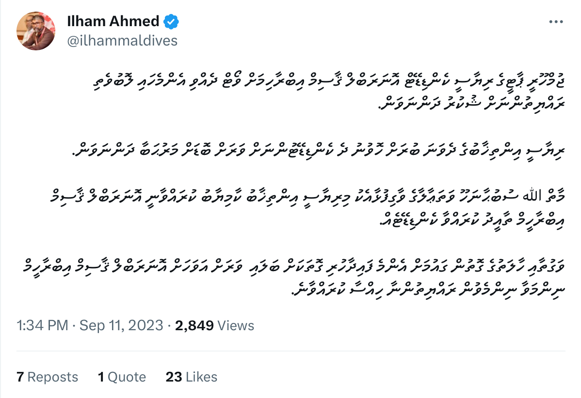 އިލްހާމް ވިދާޅުވީ ވަގުތާއި ހާލަތުގެ ގޮތުން ގައުމަށް އެންމެ ފައިދާހުރި ގޮތަކަށް ބަލައި ވަރަށް އަވަހަށް ޤާސިމް ނިންމަވާ ނިންމެވުން ރައްޔިތުންނާ ހިއްސާ ކުރައްވާނެ ކަމަށެވެ.