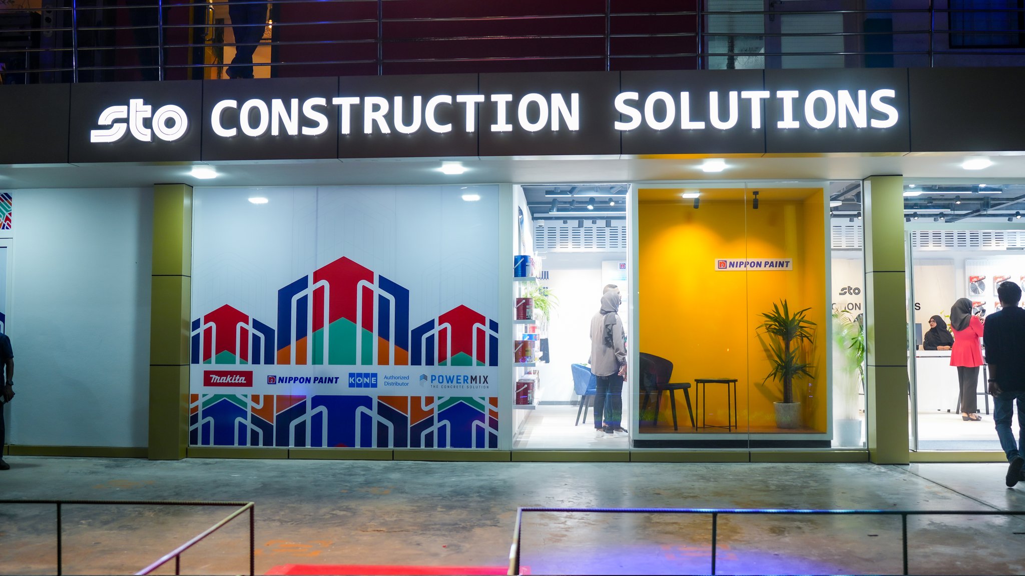 އެސްޓީއޯ ކޮންސްޓްރަކްޝަން ސޮލިއުޝަންސްގެ ހުޅުމާލެ ޝޯވރޫމް އިން އިމާރާތްކުރުމަށް ބޭނުންވާ ހުރިހާ ސާމާނެއް (ސިމެންތި, ހިލަ, ހިލަވެލި, ދަގަނޑު, ގީއައި ޕައިޕް, ސިމެންތި ފިލާ. އަދި ރޫފިންގް ޝީޓް) ގެ އިތުރުން މަކިޓާ ޓޫލްސް، އަދި ނިޕޯން ފަދަ އެސްޓީއޯގެ އެންމެ މަގުބޫލު ބްރޭންޑްތައް ލިބިގެންދާނެއެވެ. އަދި ކަސްޓަމަރު އިހްތިޔާރު ކުރާ ނިޕޯންގެ ކޮންމެ ކުލައެއް ތައްޔާރުކުރުންވެސް ވަގުތުން ކުރިއަށް ދާނެ އިންތިޒާމް މި ޝޯވރޫމްގައި ވަނީ ހަމަޖެހިފައެވެ. ހުޅުމާލޭ ޝޯރޫމް ވެގެންދާނީ ހުޅުމާލޭ ދިރިއުޅޭ ފަރާތްތަކާއި ކޮންސްޓްރަކްޝަން ސިނާއަތުގެ ބައިވެރިންނަށް ލިބިގެންދާ އިތުރު ކުރިއެރުމަކާއި ފަސޭހައަކަށް ކަމަށް އެސްޓީއޯއިން ބުނެއެވެ.