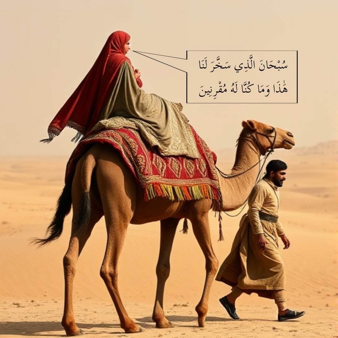 އެކަނބުލޭގެ: سُبْحَانَ الَّذِي سَخَّرَ لَنَا هَٰذَا وَمَا كُنَّا لَهُ مُقْرِنِينَ (އައްޒުޚްރުފް ސޫރަތުގެ 13 ވަނަ އާޔަތުން: އަޅަމެންނަށް މި ތަކެތި ޚިދުމަތްތެރިކޮށްދެއްވި ރަސްކަލާނގެ ހުސްޠާހިރުވަންތަކަމާއެވެ! އަދި އަޅަމެންއެކަމަށް ކުޅަދާނަވެގެންވާ ބަޔަކުކަމުގައި ނުވަމުއެވެ.)