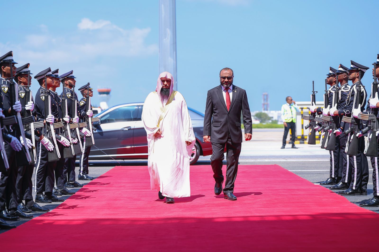 އިސްލާމިކް މިނިސްޓްރީން މިއަދު ބުނީ މަސްޖިދުއްނަބަވީގެ އިމާމު ފަޟީލަތުއްޝައިޚް ޑރ. ޞަލާޙުލް ބުދައިރަށް ވެލާނާ އިންޓަނޭޝަނަލް އެއާޕޯޓުން ރަތްދޫލައިގެ މަރުޙަބާއެއް ދެންނެވީ އިސްލާމީ ކަންތައްތަކާ ބެހޭ ވަޒީރު ޑރ. މުޙައްމަދު ޝަހީމް އަލީ ސަޢީދާއި އެވުޒާރާގެ އިސްވެރިން ކަމަށެވެ.