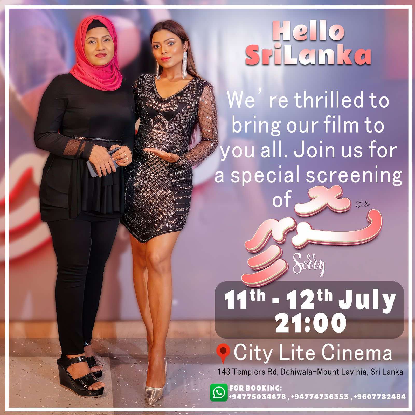 މުޅި ރާއްޖޭގައި ދިވެހި ފިލްމު "ސޮރީ" އަޅުވަމުންދާއިރު، މި ފިލްމު ލަންކާގައި އެޅުވުމަށްޓަކައި ފިލްމުގެ ޑައިރެކްޓަރު ފާތިމަތު ނަހުލާ (ނަހޫ) އަދި ލީޑު ތަރި މަރިޔަމް އައްޒަ ލަންކާއަށް ފުރައިފިއެވެ.