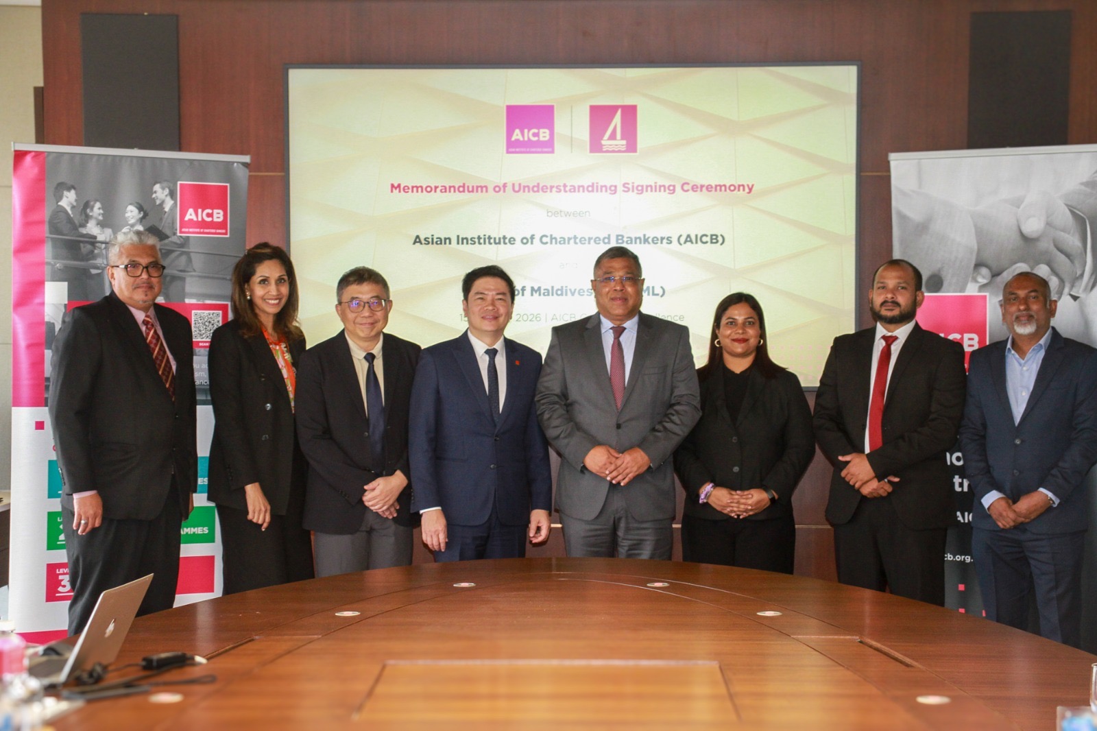 ބޭންކް އޮފް މޯލްޑިވްސް އާއި އޭޝިއަން އިންސްޓިއުޓް އޮފް ޗާޓަޑް ބޭންކާސް (އޭއައިސީބީ)އާ ގުޅިގެން ރާއްޖޭގެ ބޭންކިން ދާއިރާ އިތުރަށް ތަރައްގީކޮށް ކުރިއަރުވަން އެއްބަސްވުމެއްގައި ސޮއިކޮށްފިއެވެ.