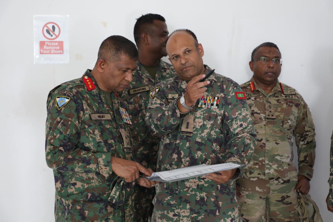 Chief of Defence Force Major General Ibrahim Hilmy visited the site today to inspect the ongoing work, which is being carried out under the supervision of the MNDF Service Corps. The relocation process is being overseen by Minister of Defence Mohamed Ghassan Maumoon.