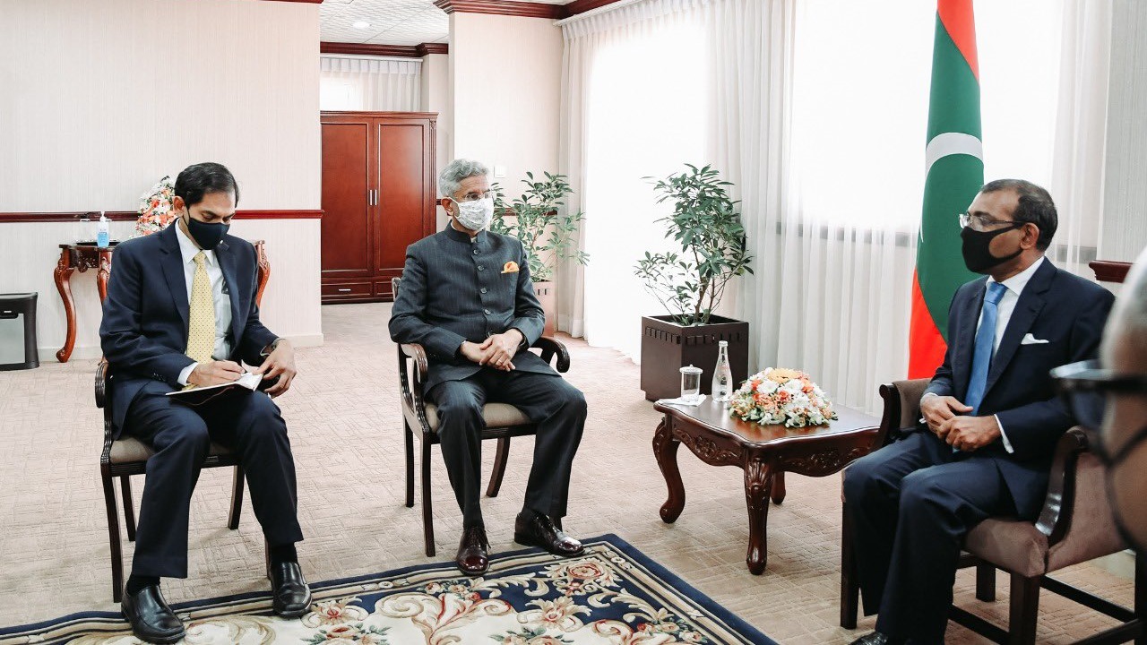 Excellent meeting with @DrSJaishankar. Discussed a range of issues, inc. climate change & the need to go beyond numbers and set out a transformational vision; sustainable fishing; Indian Ocean stability; & bilateral relations. Always a pleasure to host a friend. 🇲🇻 🇮🇳 pic.twitter.com/nkTxR3KZr4