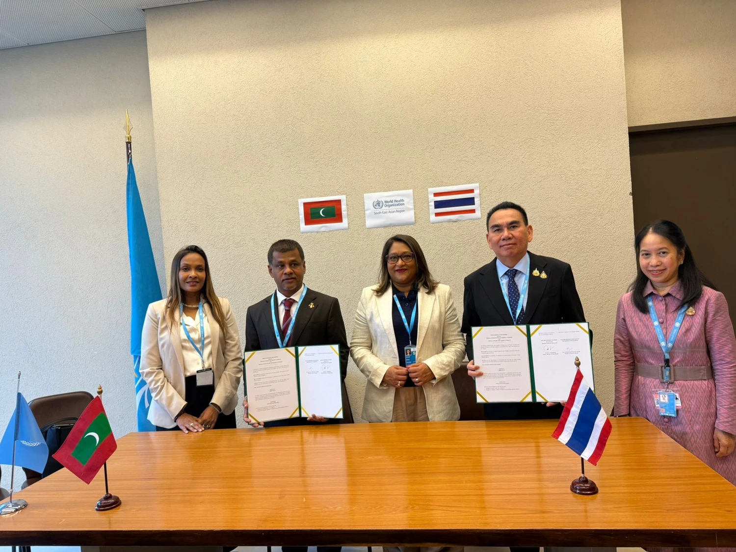 The agreement was signed on the sidelines of the 78th World Health Assembly, currently underway in Geneva, Switzerland. State Minister Hadija Abdul Samad Abdullah signed the MoU on behalf of the Maldives Ministry of Health, while Thailand was represented by Deputy Minister of Public Health, Dash-is Kawthong.