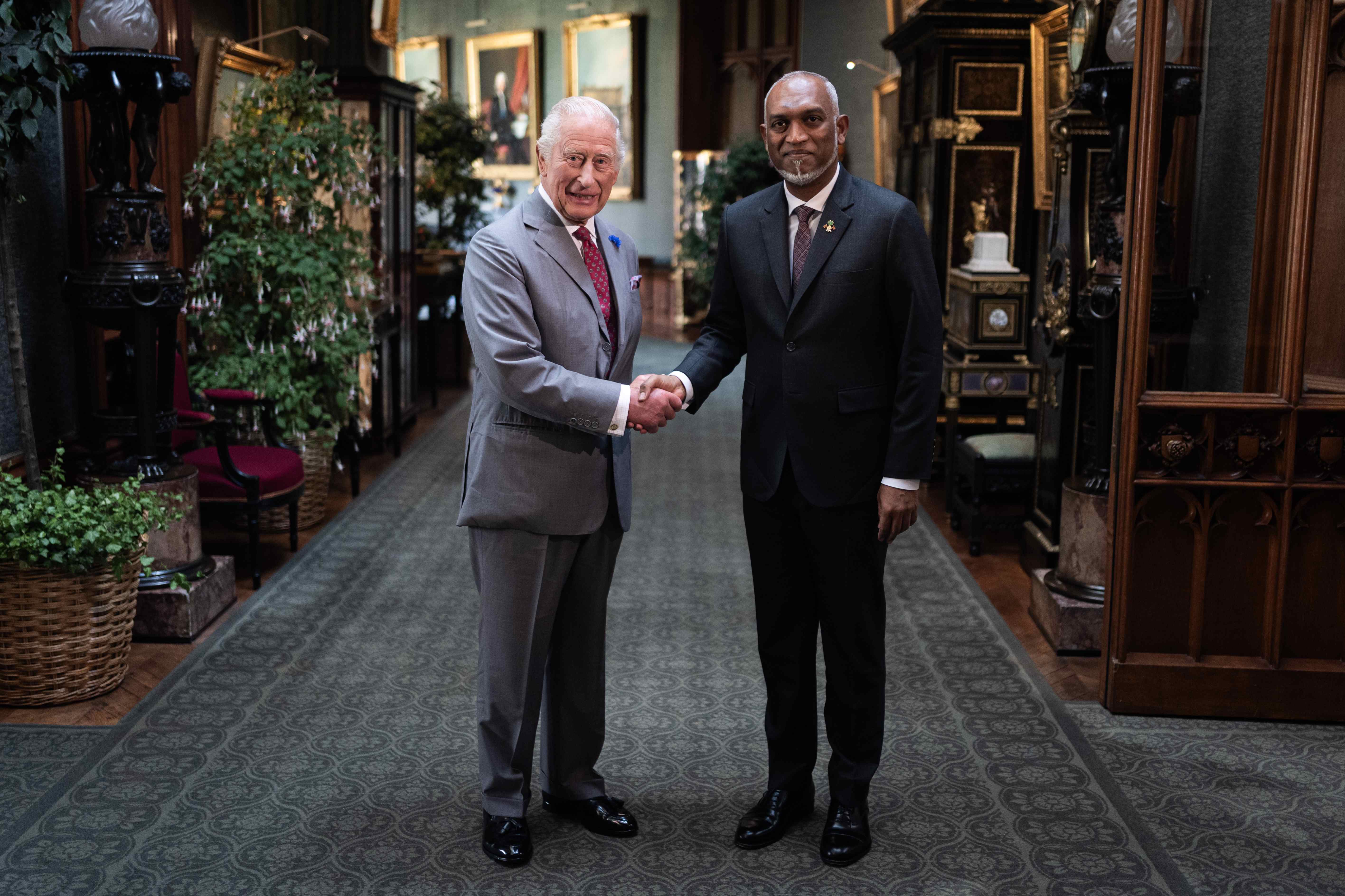President Dr. Mohamed Muizzu was granted a private audience with His Majesty King Charles III at Windsor Castle on Friday, as part of his official visit to the United Kingdom.