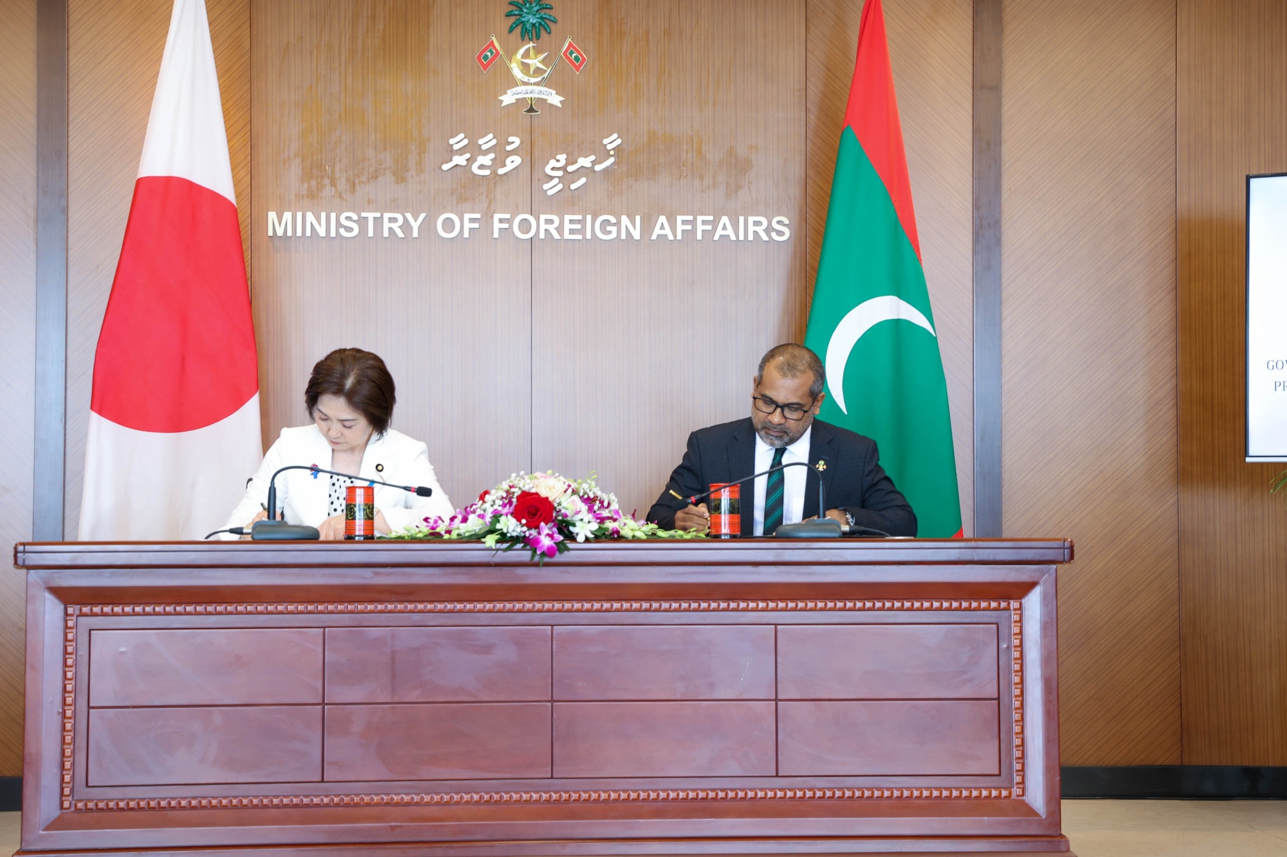 The signing ceremony was held at the Ministry of Foreign Affairs. Minister of Foreign Affairs Dr. Abdulla Khaleel signed the agreement on behalf of the Maldives, while Her Excellency Ikuina Akiko, Special Envoy of the Prime Minister of Japan and Parliamentary Vice-Minister for Foreign Affairs, signed on behalf of Japan.