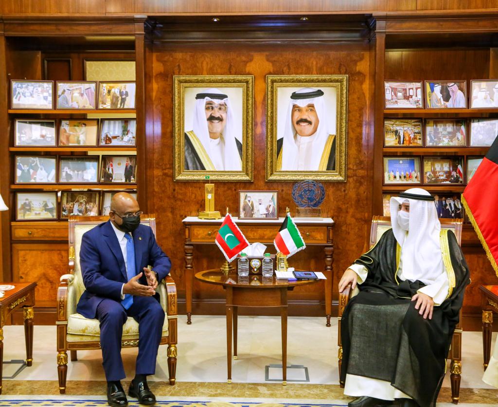 Minister of Foreign Affairs, Abdulla Shahid has met with the Foreign Minister and Minister of State for Cabinet Affairs of the State of Kuwait, Dr. Ahmad Nasser Al-Mohammad Al-Ahmed Al-Jaber Al-Sabah, in Kuwait City, today.