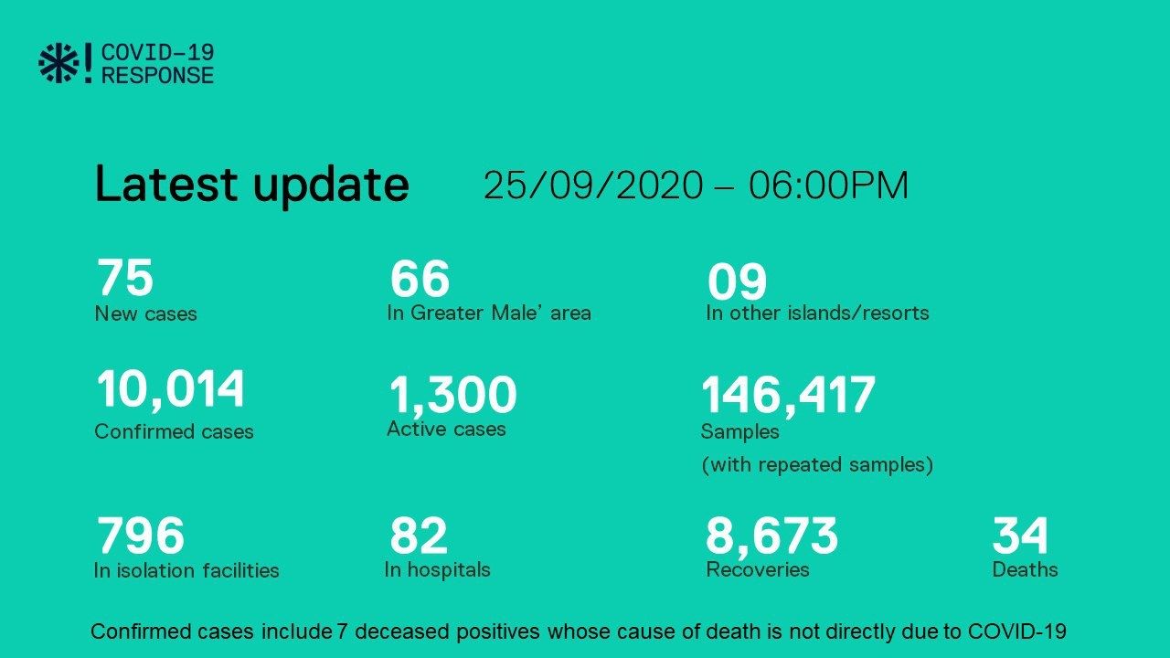 September 25th; (HPA) Health Protection Agency of the Maldives; reports 75 positive cases within 24 hours. This includes 53 Maldivians and 22 Foreigners.