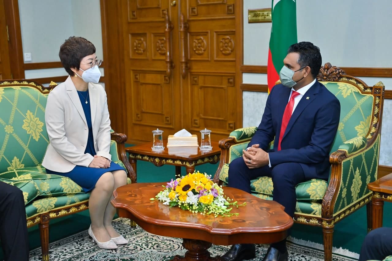 The Vice President also assured the Ambassador of the Maldives' commitment to upholding the One-China Principle. He also conveyed appreciation to the Chinese government for providing assistance to the Maldives in joining the G20’s Debt Service Suspension Initiative, noting that it greatly assisted in restarting the economy.