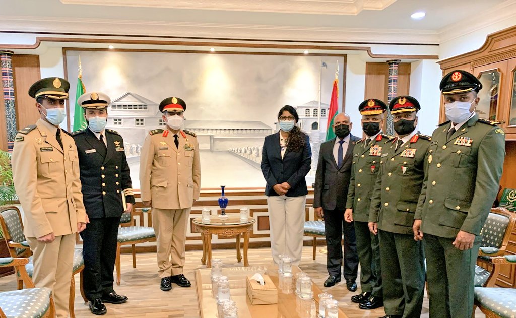During the meeting held on Monday morning at MNDF IHQ, Minister Mariya reaffirmed the full support of the Maldivian Government to national and international counter-terrorism efforts, under President Ibrahim Mohamed Solih's "Zero Tolerance Against Terrorism and Violent Extremism" policy. In this regard, the Minister noted the ongoing deployment of MNDF officers at the IMCTC's Counter-Terrorism Center in the Saudi capital Riyadh, since January 2020, having extended the initial 1-year term of service.