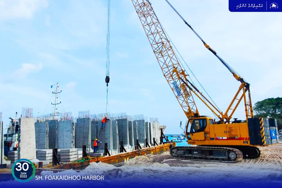 Updating the media about the work on Design and Build of Sh. Foakaidhoo Harbor development, the Maldives Transport and Contracting Company (MTCC) have stated that the project is well underway, with overall 56% project progress.