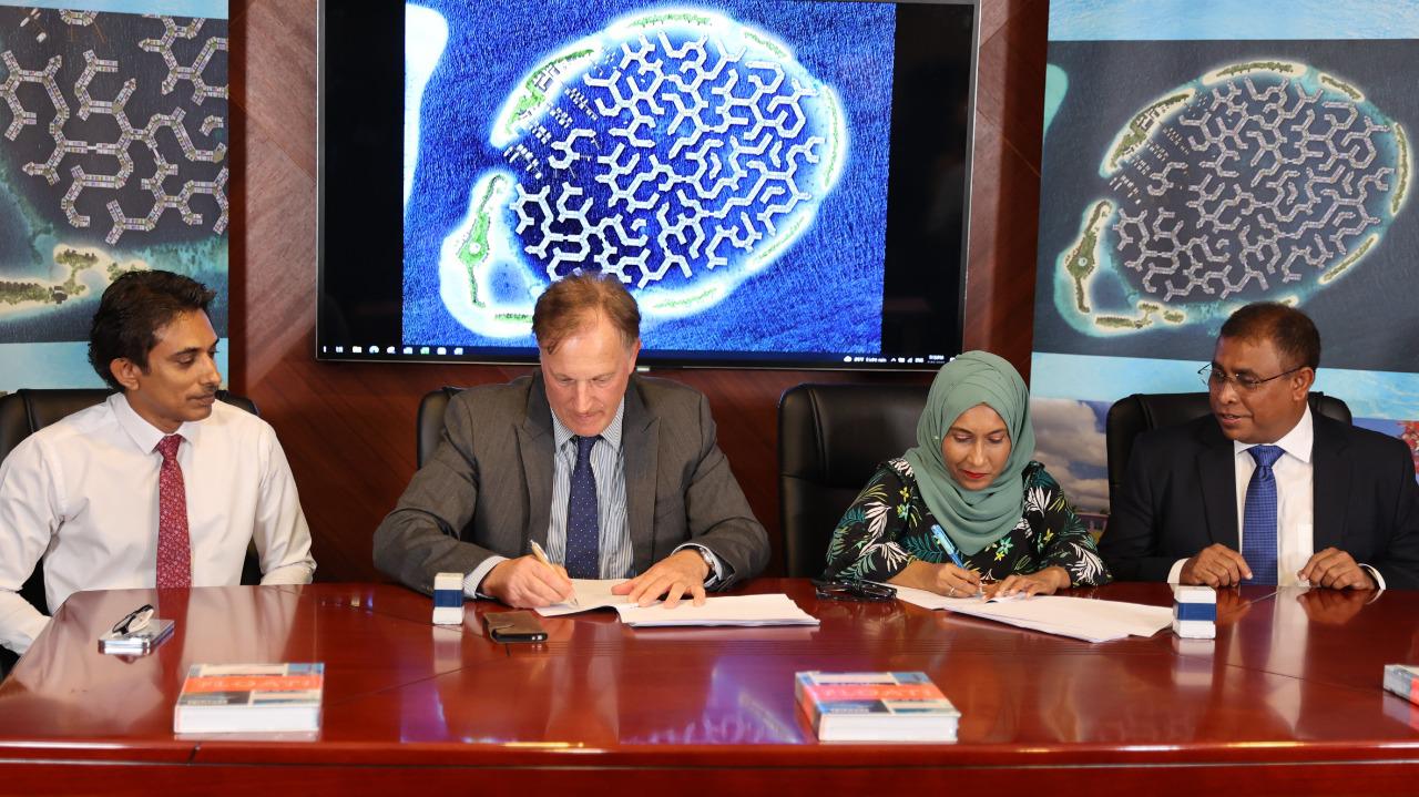 Following the advice from the Government’s Economic Council that the Maldives, MoUs were signed between Dutch Docklands Maldives and the Ministry at a special ceremony held in Male' on Thursday, Dutch Docklands Maldives and the Ministry signed the new MoUs in order to start the floating city development under an Integrated Tourism model.