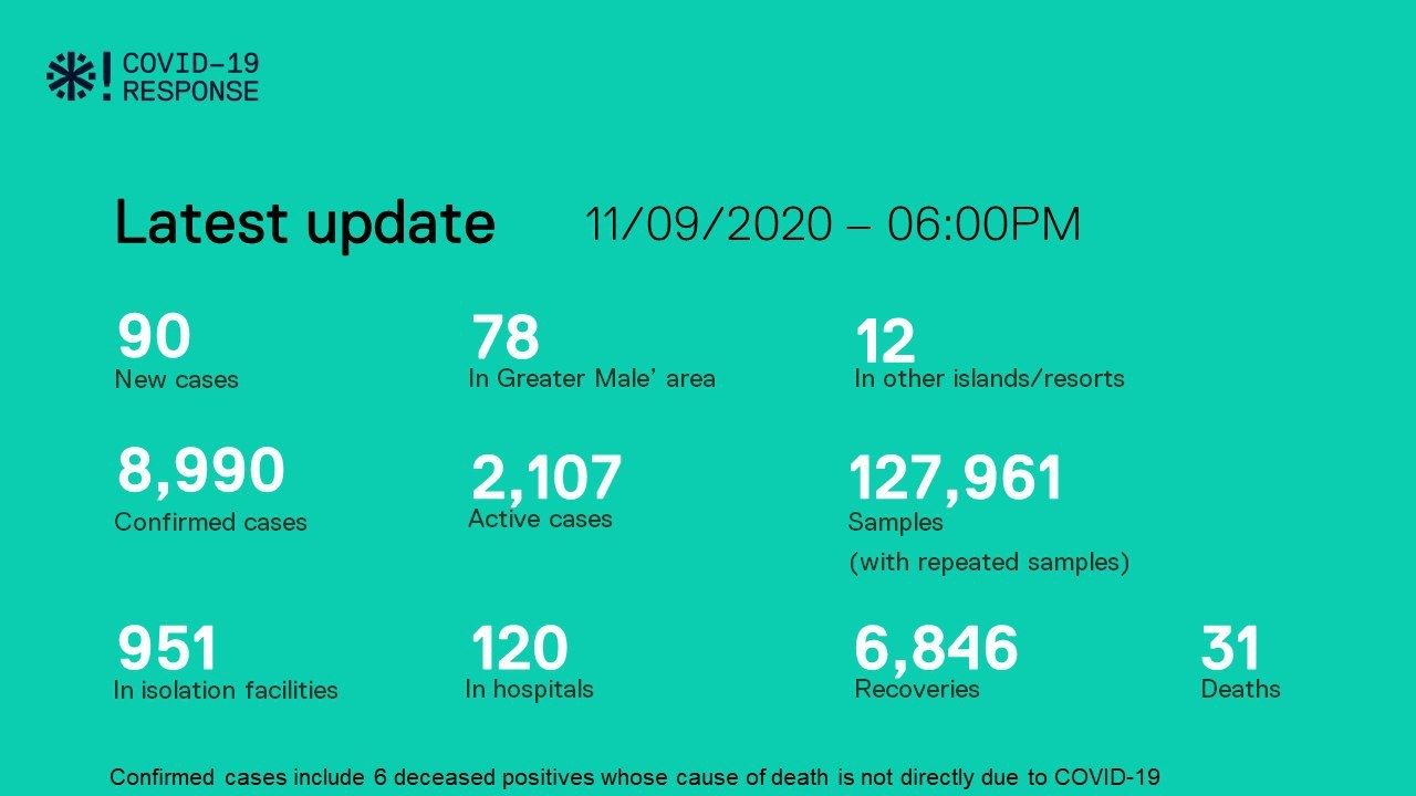 September 11th; (HPA) Health Protection Agency of the Maldives; reports 90 positive cases within 24 hours. This includes 58 Maldivians and 32 Foreigners.