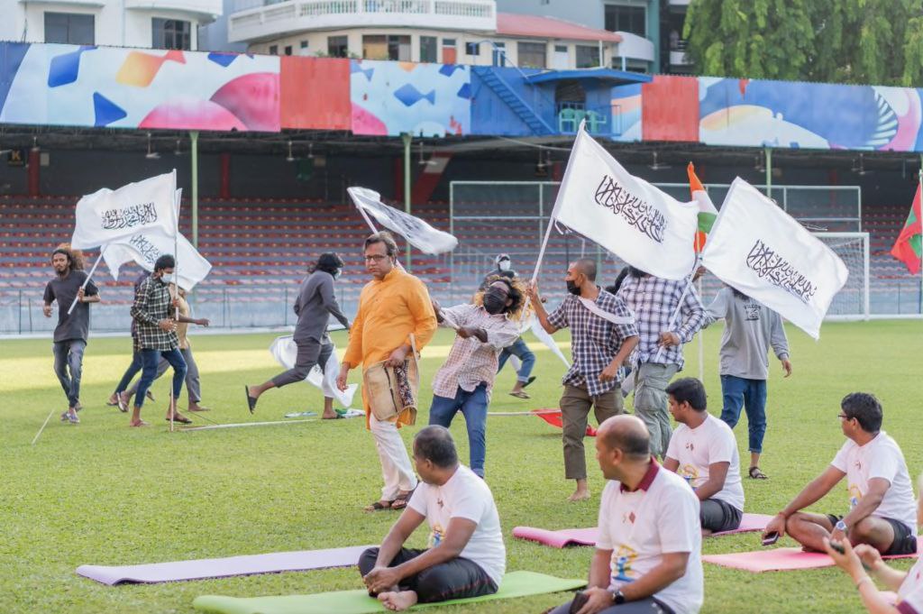 The Yoga day celebrations, which were attended by a large number of people, including senior government officials and foreign diplomats, were interrupted by a crowd on the premises violently raising their views against Yoga. They also damaged some items on the premises.