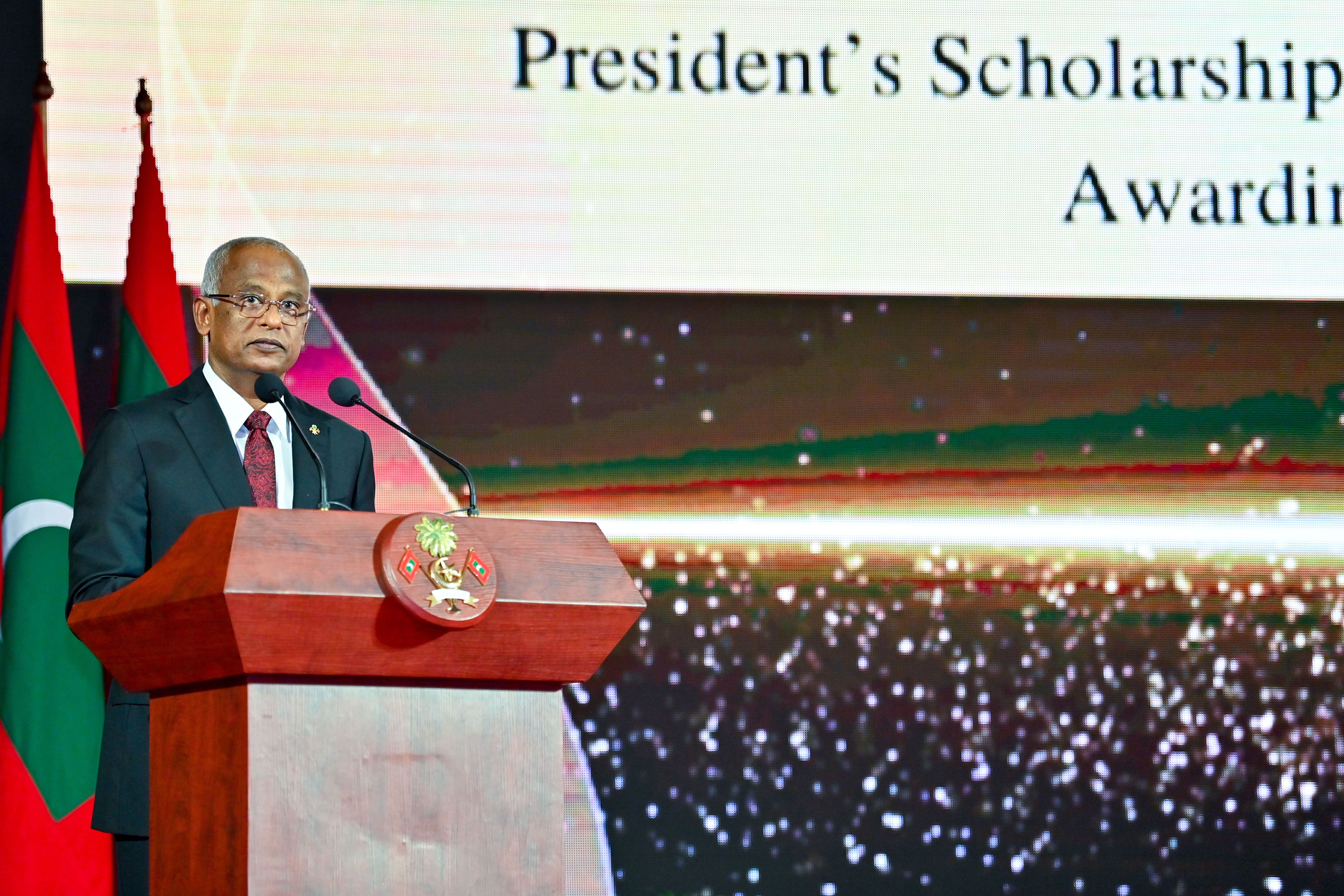The President awarded scholarship letters to six students that achieved the highest results in the GCE A-level examinations. Five students were from the Centre for Higher Secondary Education (CHSE) and one was from Kulhudhuffushi Jalaluddin School. All six of the top achievers were female students. The President congratulated the award recipients and wished them success in the future.