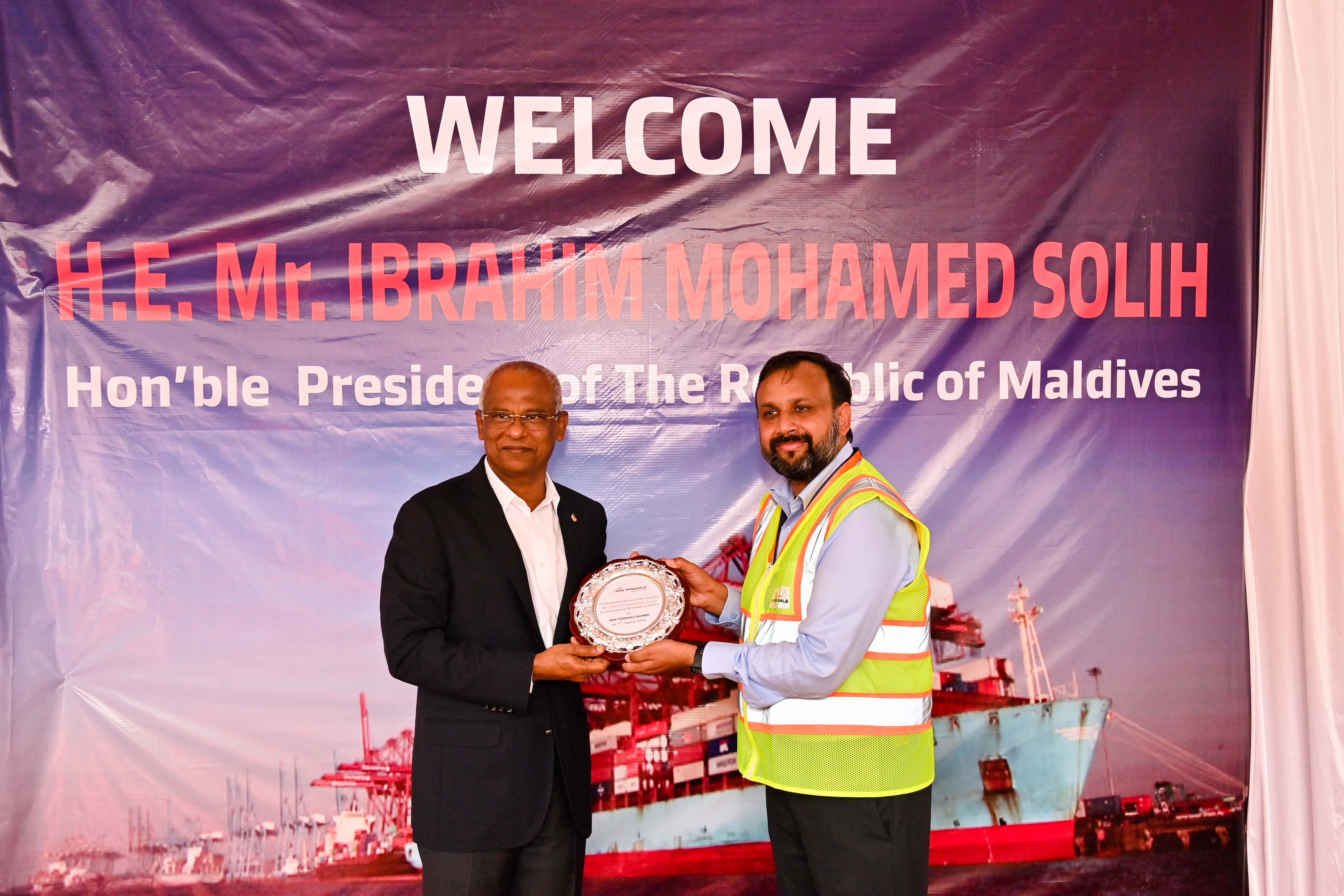 President Ibrahim Mohamed Solih on Thursday morning visited Jawaharlal Nehru Port Trust (JNPT) in Mumbai, India.