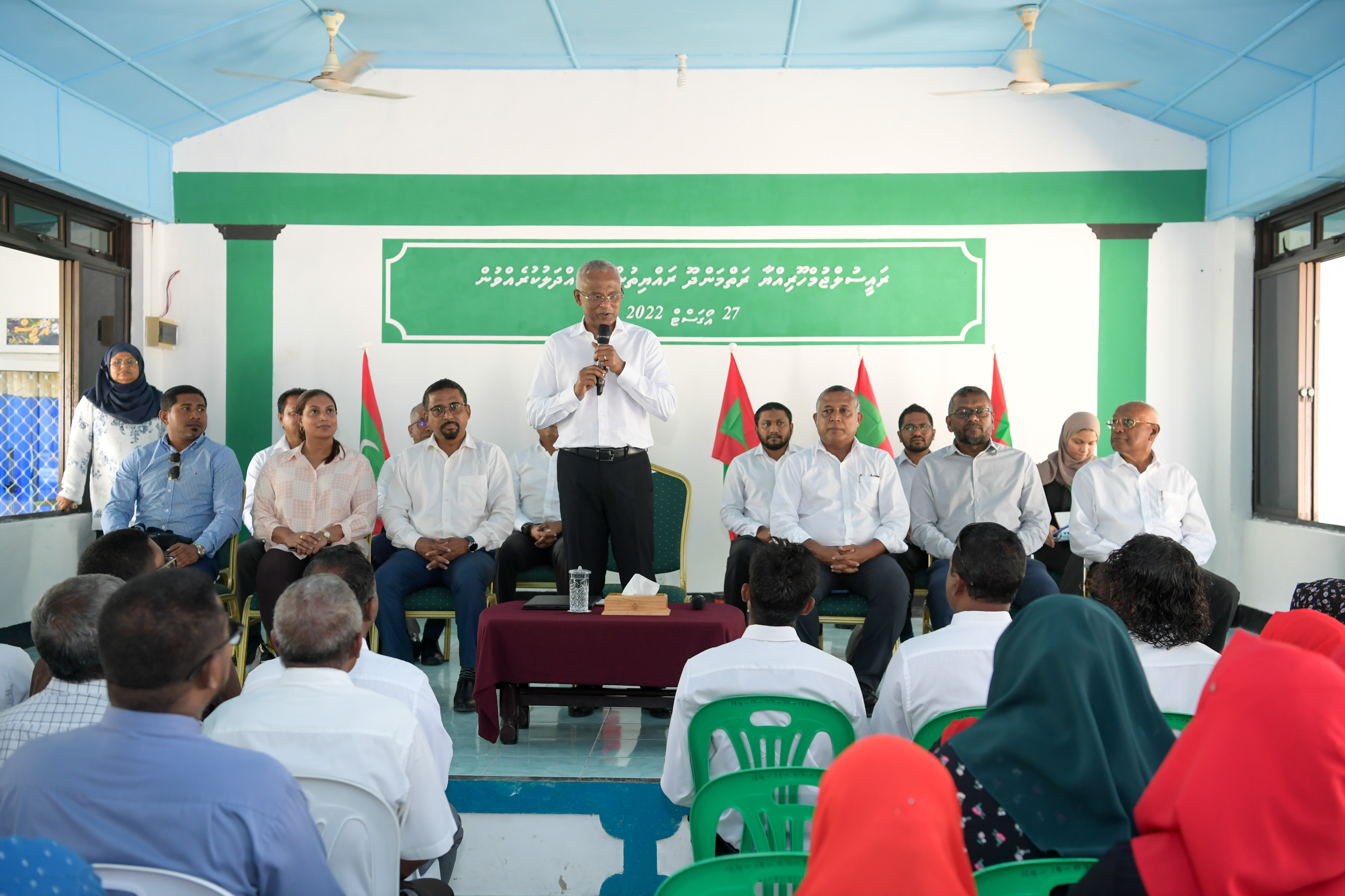 Noting that previous administrations had prioritized the development of islands with larger sizes and populations, the President stated that his administration seeks equitable development of all islands, irrespective of their population or size. The President said that he had discussions about the most pertinent needs of the residents at his meeting with the members of the island council and Women’s Development Committee (WDC) earlier in the day.