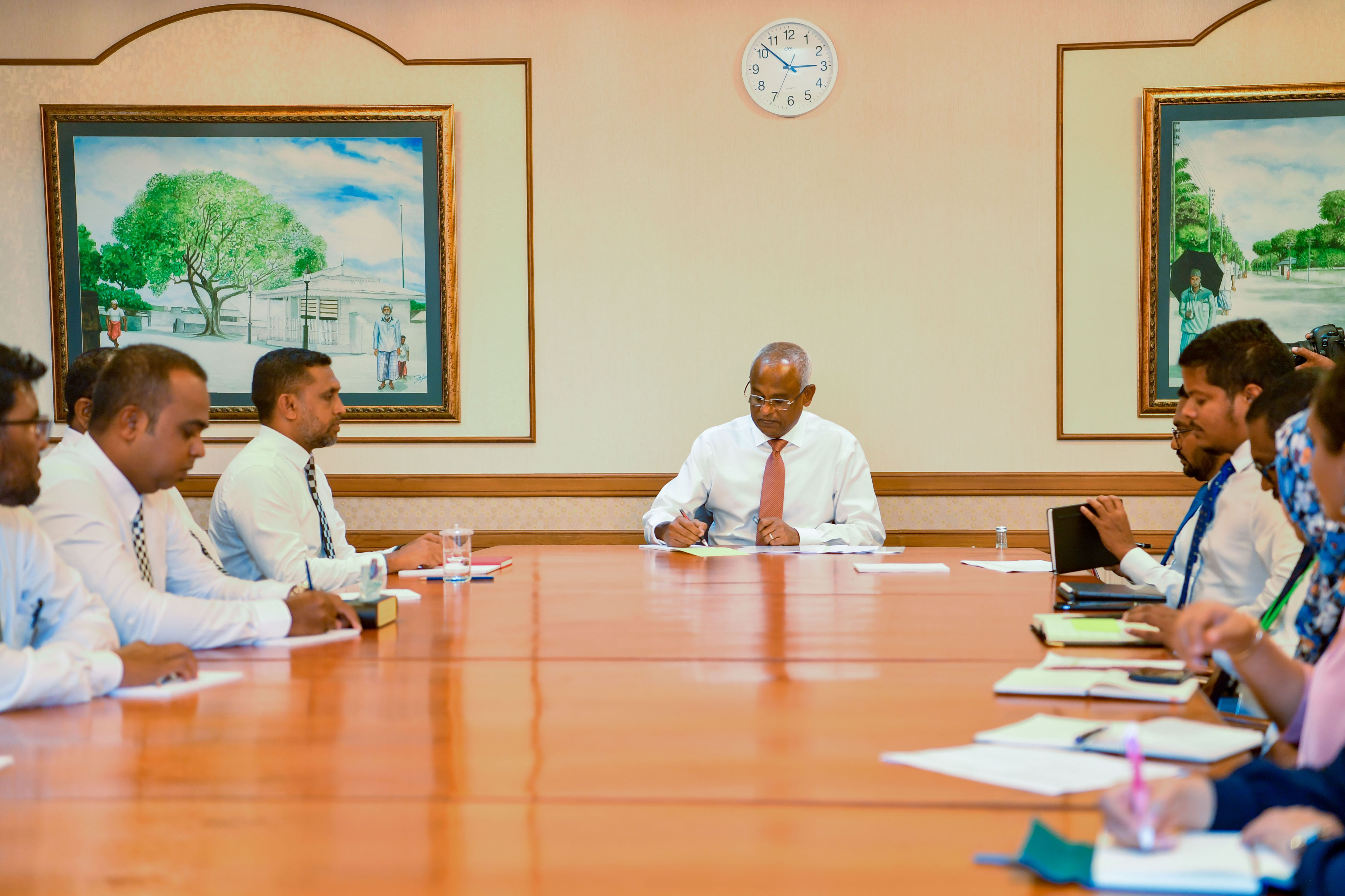 President Ibrahim Mohamed Solih on Thursday met with the members of the island council and the Women’s Development Committee (WDC) of Dharavandhoo Island in Baa Atoll. The meeting was held this afternoon at the President's Office and focused on developmental projects and the pertinent needs of the island.