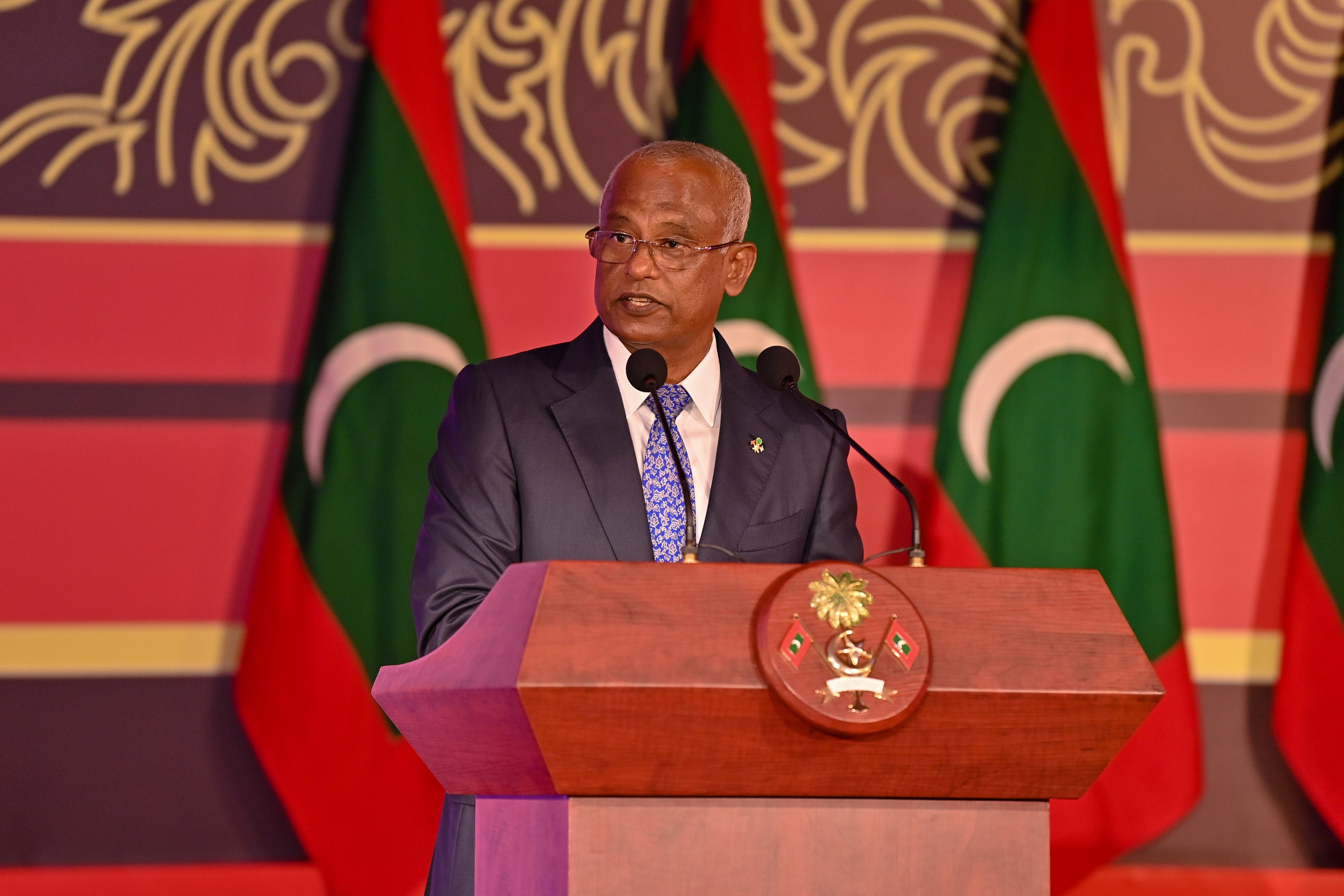 The President was accompanied by First Lady Fazna Ahmed, Vice President Faisal Naseem and his spouse, Aishath Shamsadha, and former President Dr. Mohamed Waheed Hassan Manik and his spouse, along with cabinet ministers and state dignitaries.