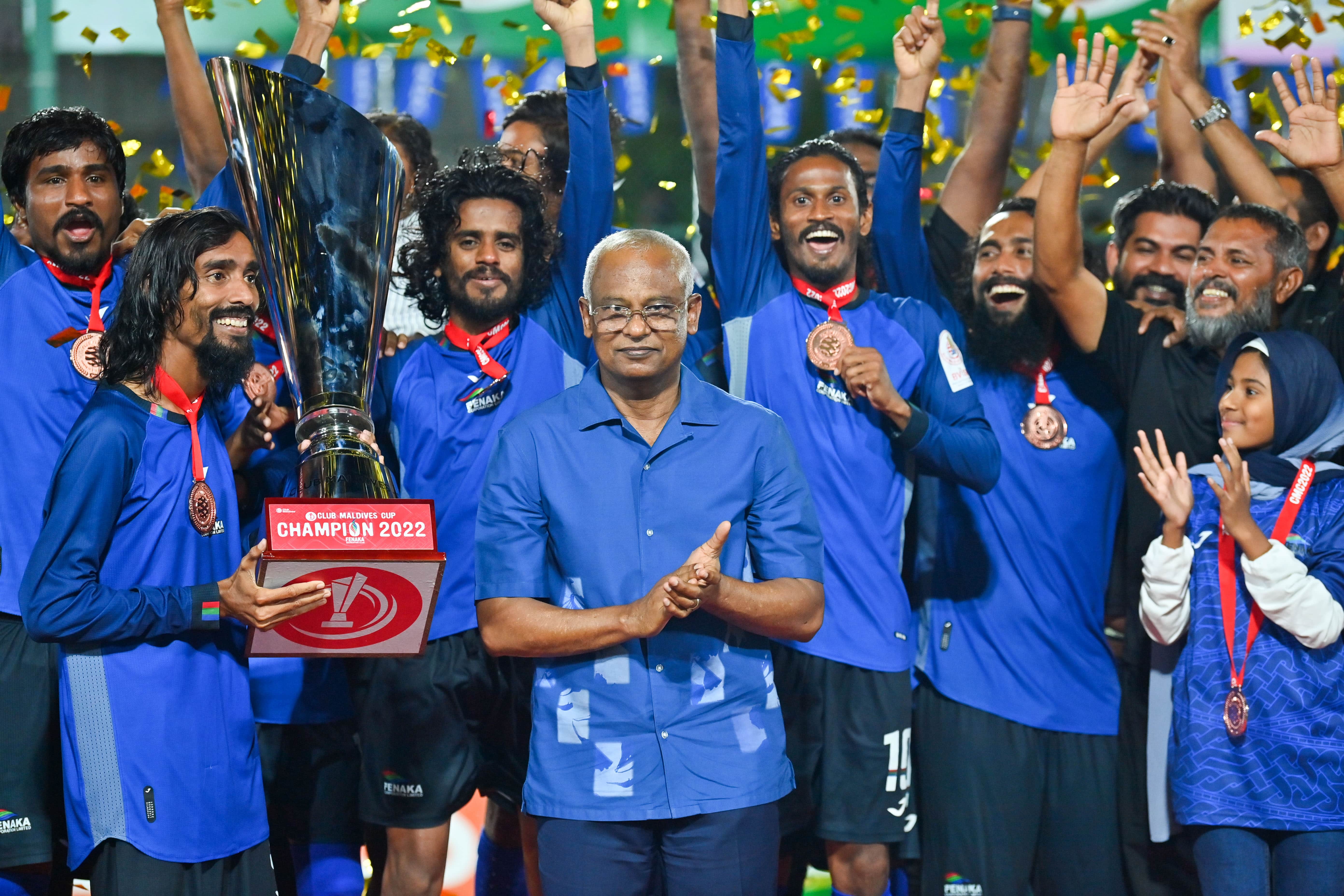 President Ibrahim Mohamed Solih on Saturday attended the final match and closing ceremony of the Club Maldives Cup 2022. The local NGO Club Maldives organized the tournament at the Rehendhi Futsal Turf in Hulhumalé.