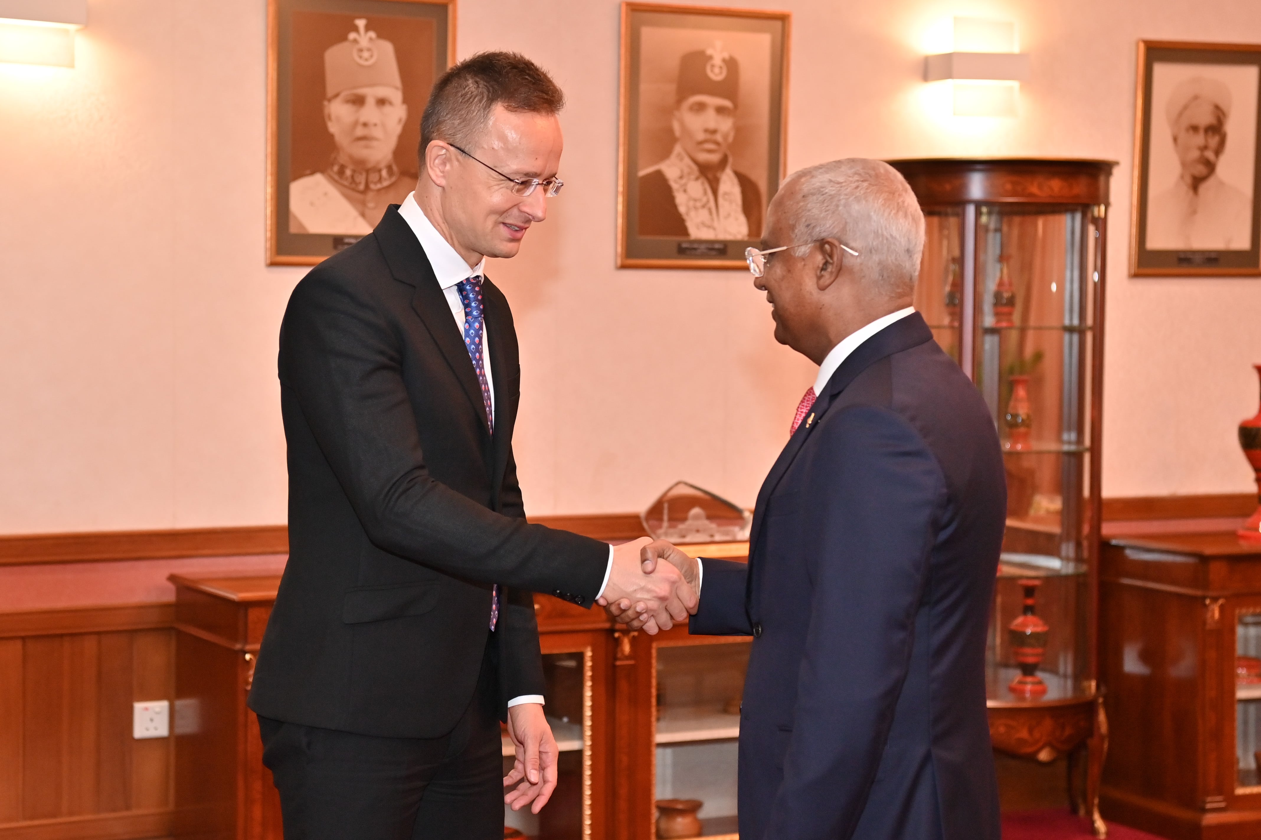 The President and Mr. Szijjártó spoke about enhancing bilateral relations between the two countries and emphasized their commitment to strengthen cooperation in areas of mutual interest and benefit. Mr. Szijjártó outlined the existing ties between the two countries and emphasized the MoUs signed today. He highlighted that Hungary had increased the number of scholarship opportunities offered to Maldivian students from 15 to 25.