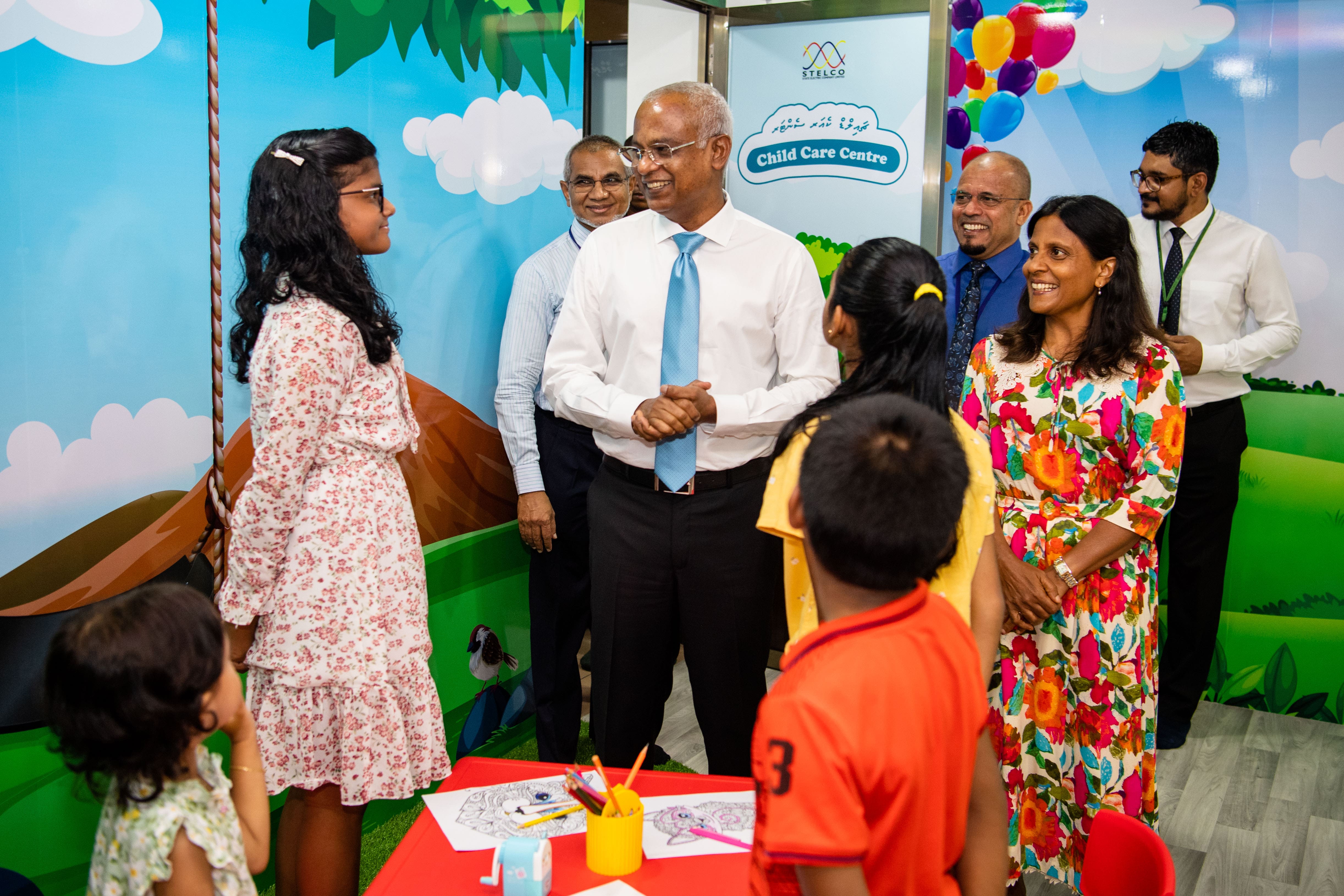 President Ibrahim Mohamed Solih and First Lady Fazna Ahmed visited the newly opened "Child Care Centre" at the State Electric Company Limited (STELCO) on Sunday.