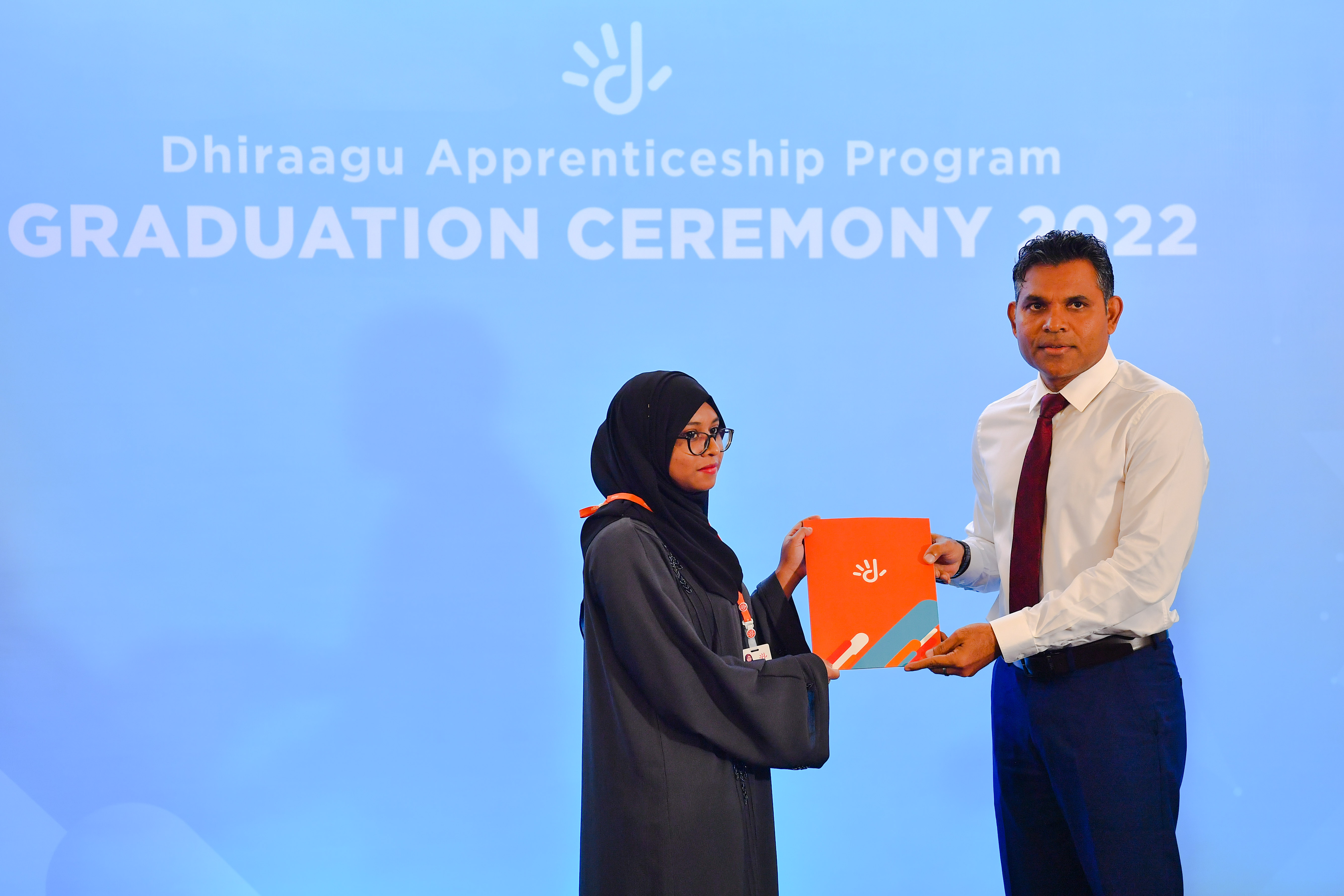 The Dhiraagu Apprenticeship Program is the first corporate apprenticeship program introduced in the Maldives. It is a key CSR initiative of Dhiraagu with the objective of helping develop employability skills in Maldivian youth. The company has been conducting an apprenticeship program since 2009, and a total of 247 young people have enrolled in the program to date.