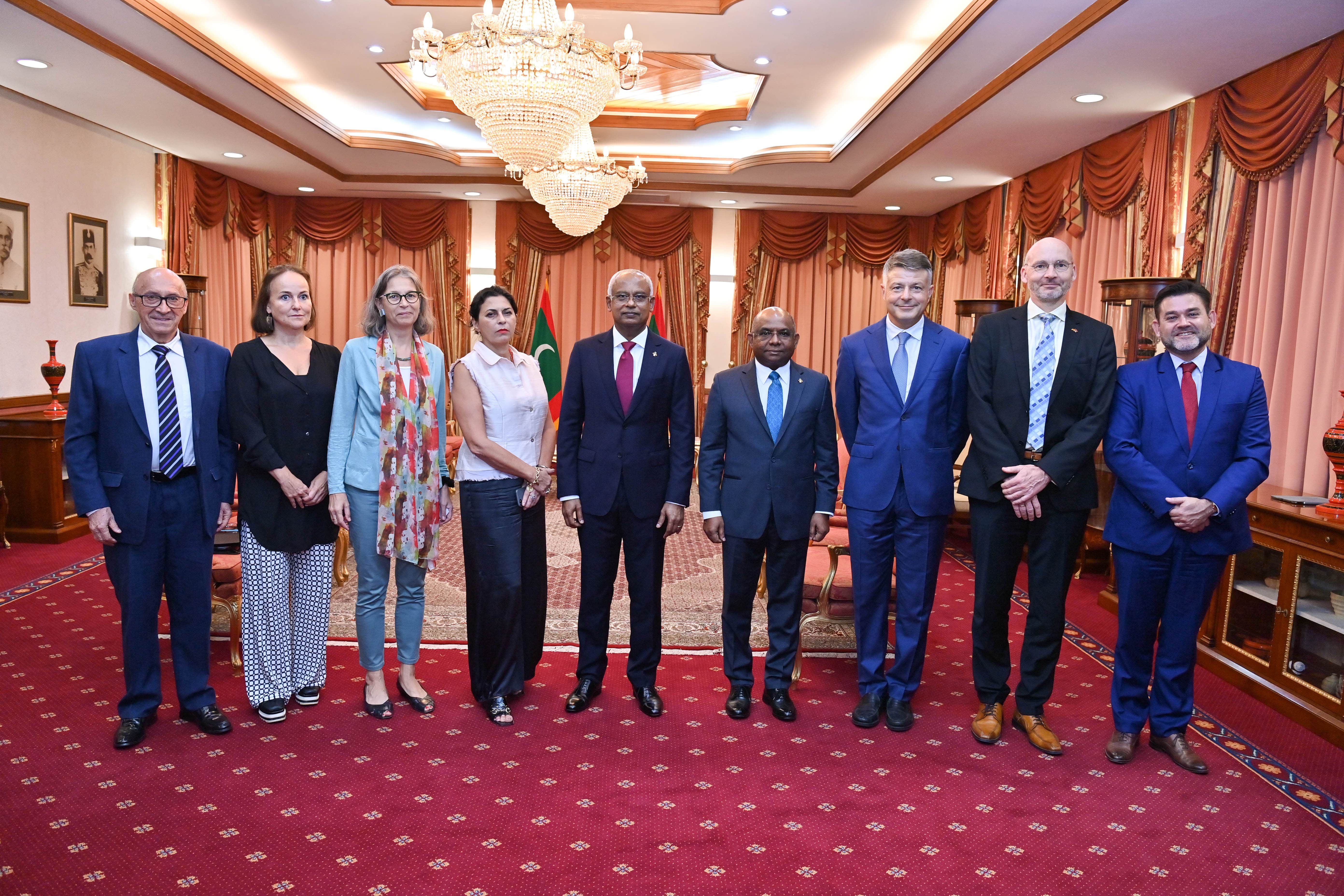 The E.U. Ambassador to the Republic of Maldives, H.E. Denis Chaibi, headed the delegation. He was joined by the Ambassador of the Republic of Italy to the Republic of Maldives, H.E. Rita Manella; Ambassador of the Republic of Austria to the Republic of Maldives, H.E. Katharina Wieser; Ambassador of the Federal Republic of Germany to the Republic of Maldives, H.E. Holger Seubert; Ambassador of the Kingdom of the Netherlands to the Republic of Maldives, H.E. Bonnie Horbach; Chargé d'affaires at the Embassy of Romania, Mr. Victor Chiujdea; and Deputy Head of Mission at the Embassy of France, Mr. Aurélien Maillet.