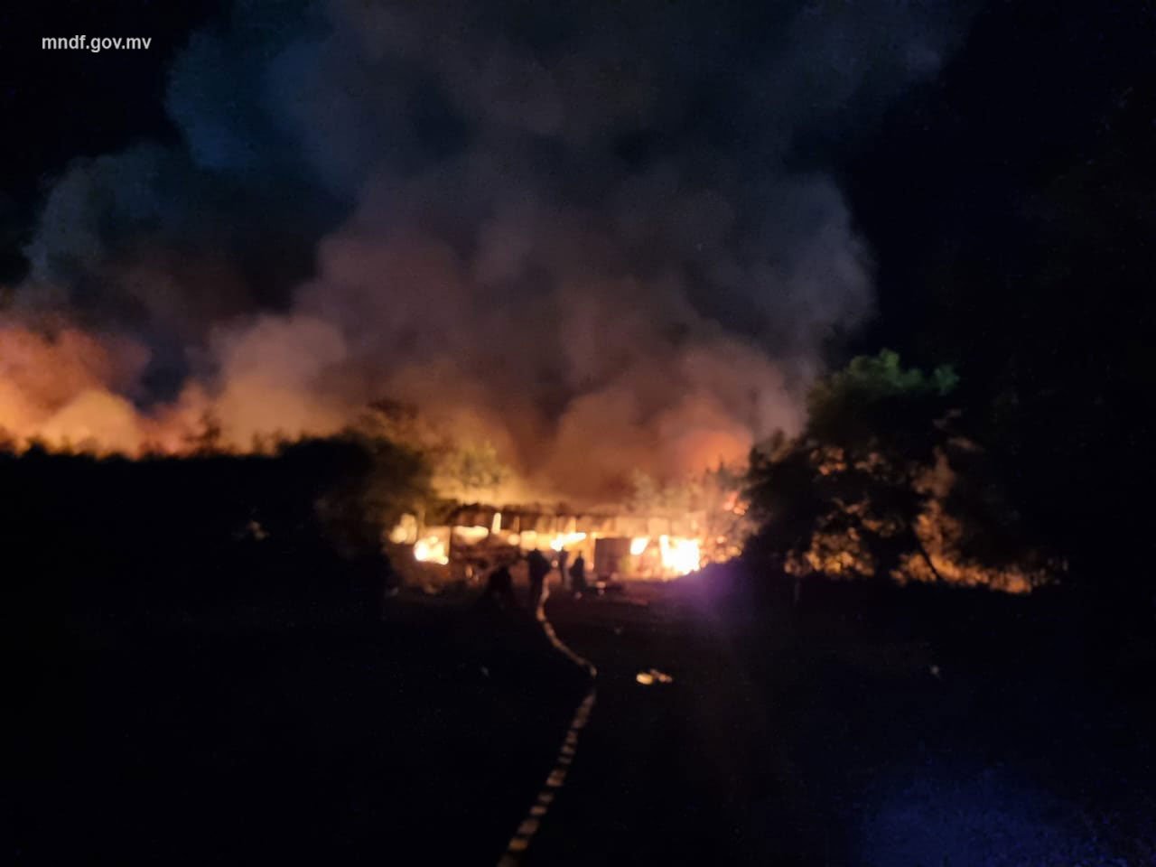 The MNDF Fire and Rescue Service have stated that they received a report of the incident at 12:31 am. And that FRS firefighters had rushed to the scene and started extinguishing the fire as soon as they had received the report. The fire was extinguished at 1:52 am.