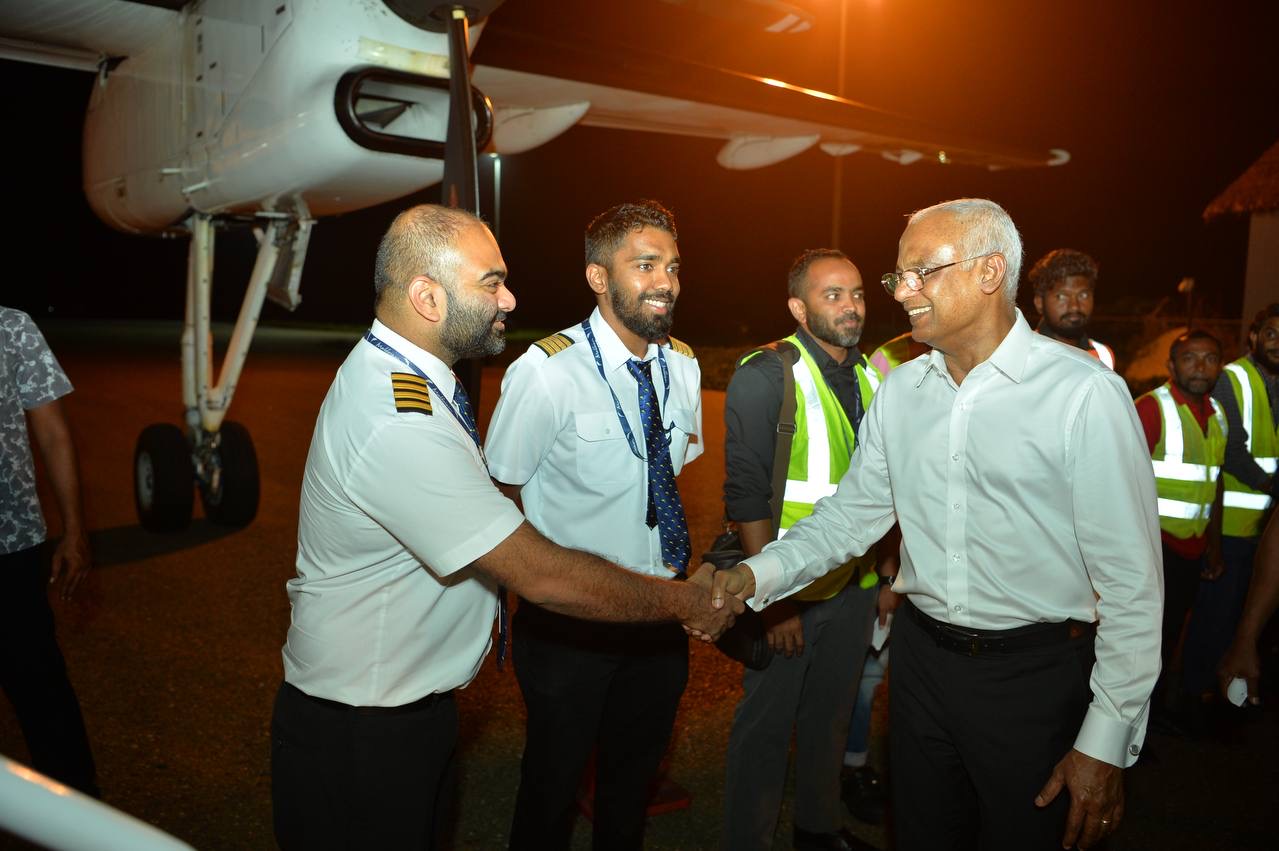 President Ibrahim Mohamed Solih concluded his two-day official visit to three islands of Gaafu Alif Atoll on Saturday evening and returned to Malé City. The President visited Dhaandhoo, Nilandhoo, and Maamendhoo Islands.