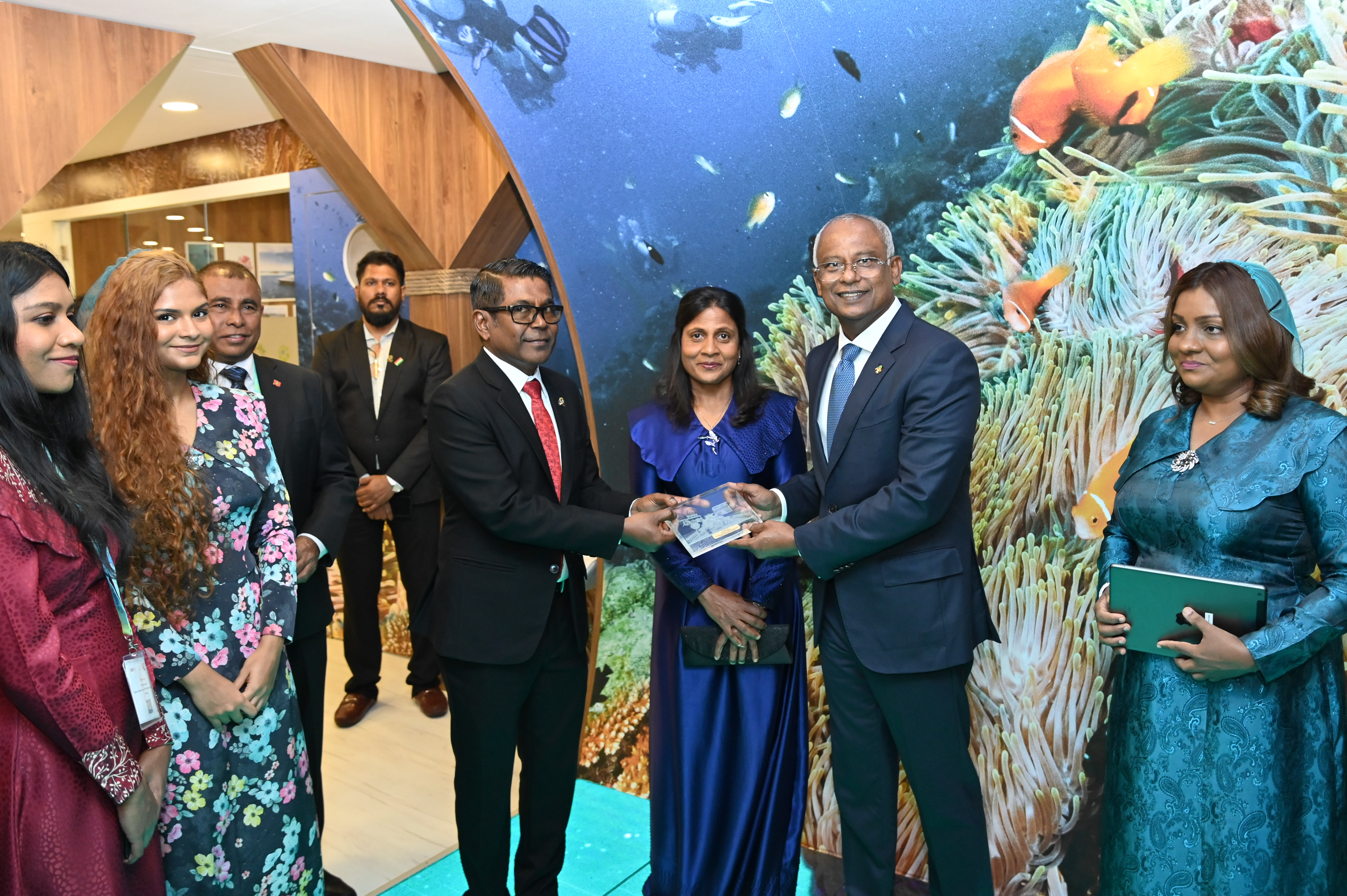During the visit, the President and the First Lady toured the Maldives’ stand at the fair, featuring the unique qualities of Maldivian hospitality and the variety of services and experiences it offers. MMPRC presented President Solih with a miniature model of the stand during his visit.