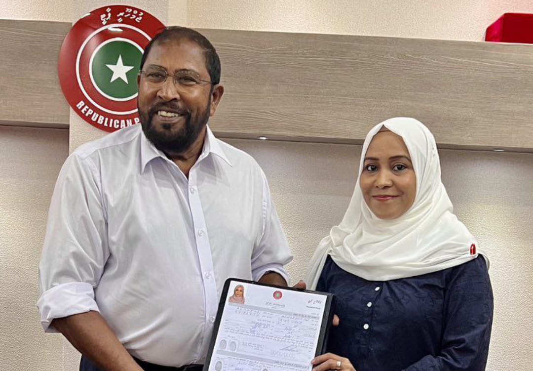 Lubna handed over her form to JP leader Qasim Ibrahim at a ceremony held at the JP office.