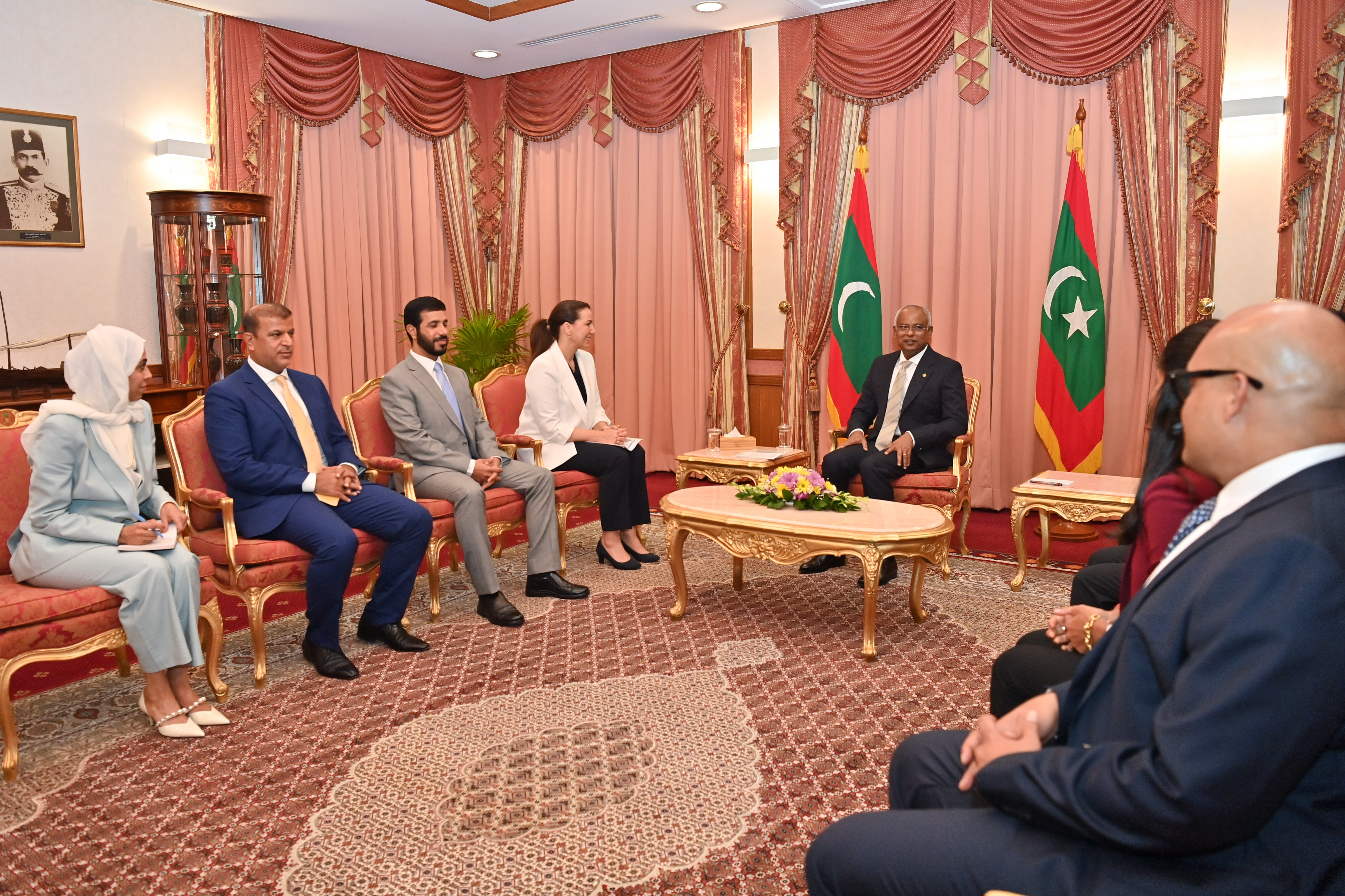 The Minister of Climate Change and Environment of the United Arab Emirates (UAE), H.E. Mariam bint Mohammed Saeed Hareb Almheiri, on Wednesday morning, paid a courtesy call on H.E. President Ibrahim Mohamed Solih.