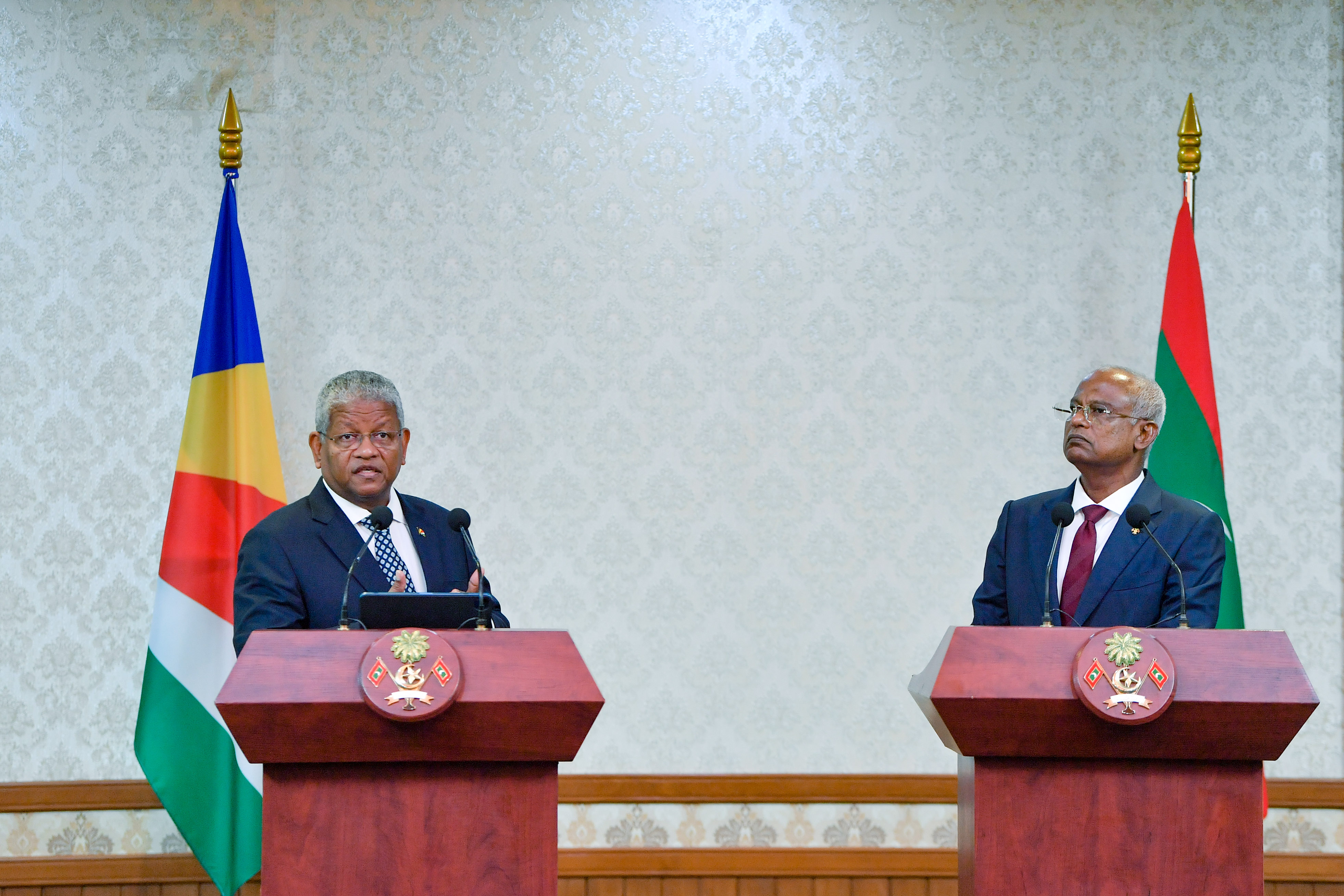 H.E. President Ibrahim Mohamed Solih and H.E. President of the Seychelles, Mr Wavel Ramkalawan, delivered a joint statement at the President's Office on Monday morning.
