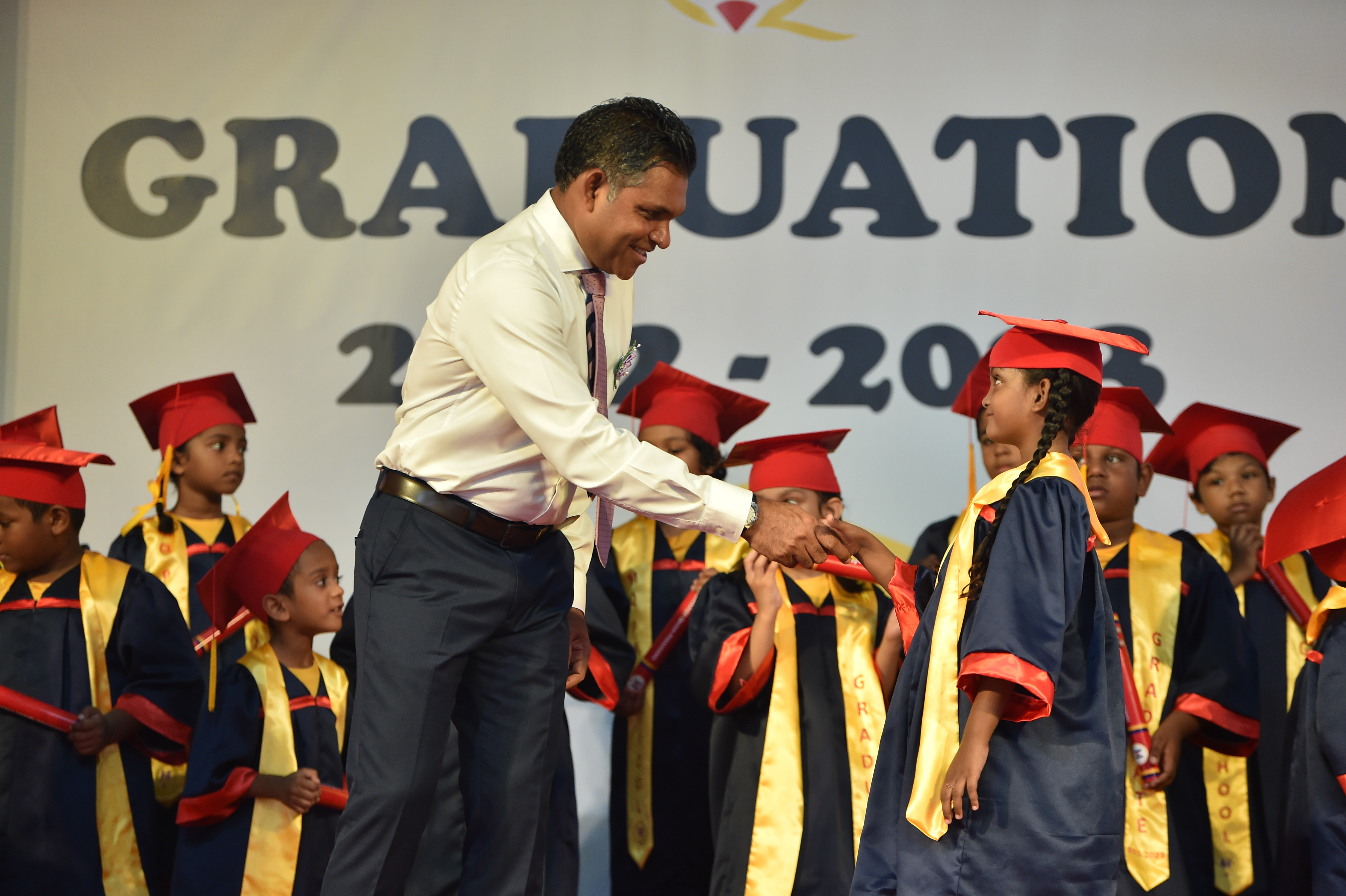 During the ceremony, the Vice President distributed scrolls to graduates from UKG1 to UKG8. Mohamed Qasim Preschool was established on October 24, 2021, and currently has 462 students, including 36 with special needs. In the academic year 2022-2023, the school saw 198 students graduate.