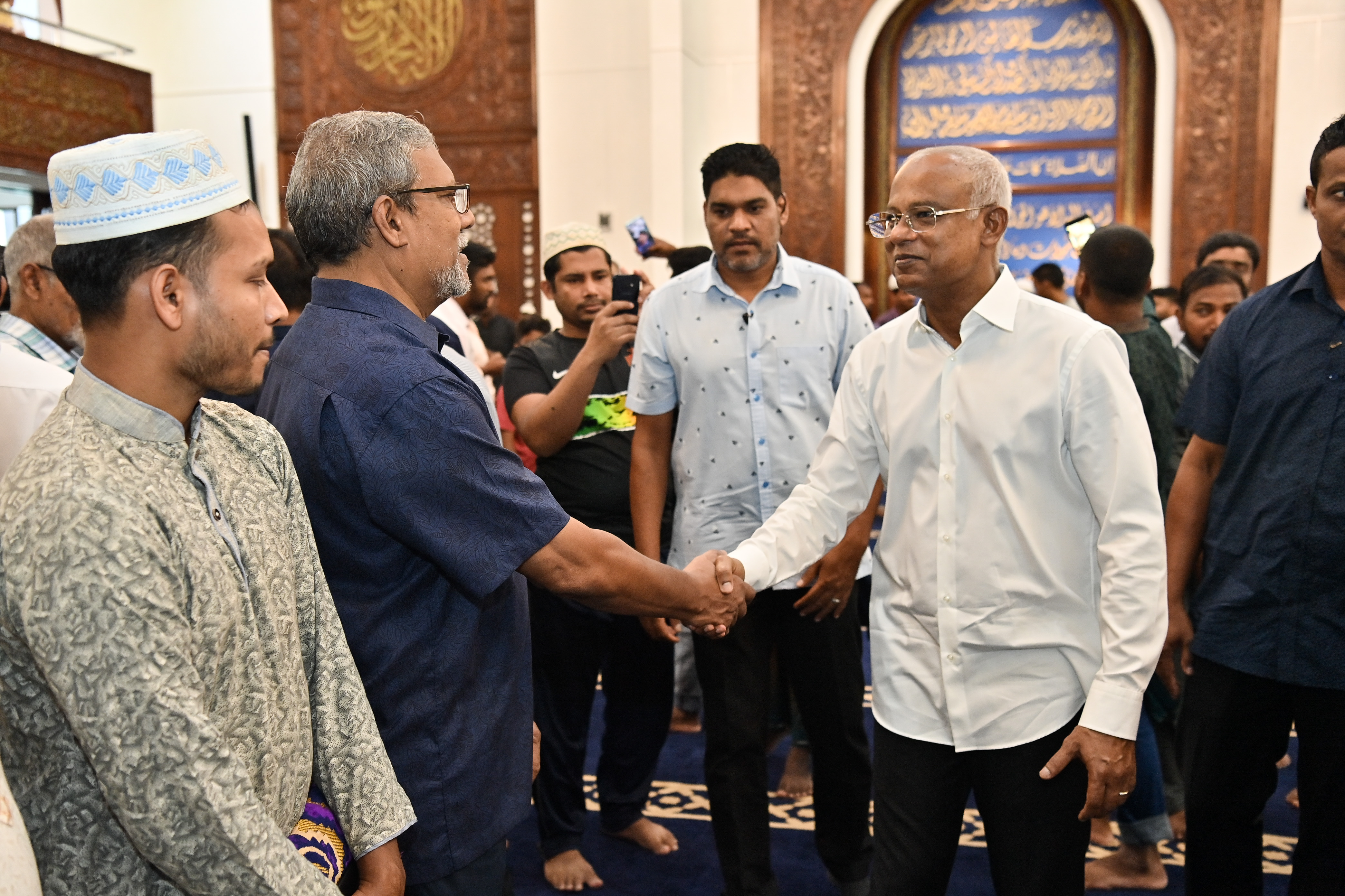 President Ibrahim Mohamed Solih on Wednesday attended Eid al-Adha prayers at the Islamic Centre. Following the prayers, the President exchanged Eid greetings with members of the public.