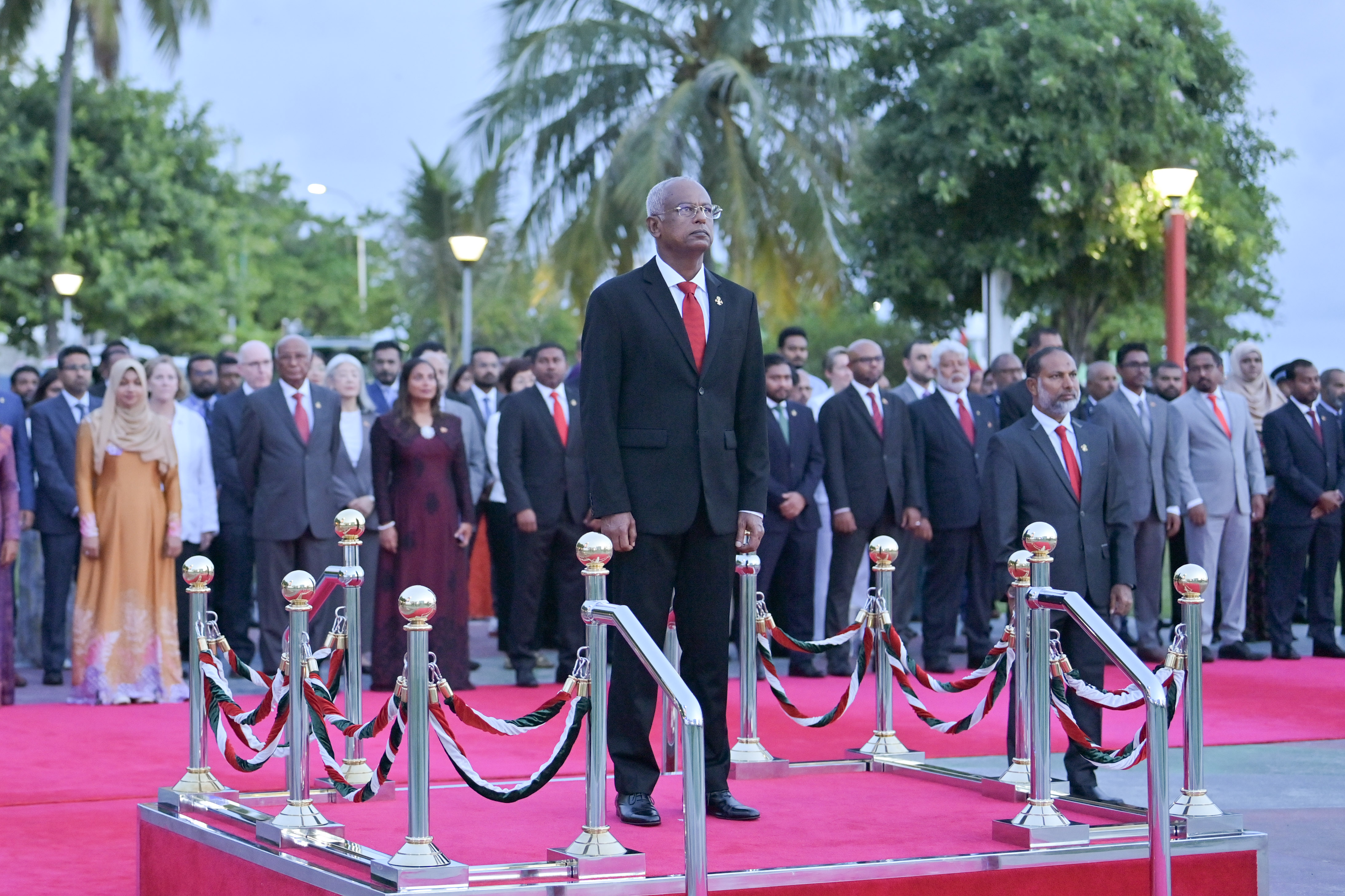 President Ibrahim Mohamed Solih and First Lady Fazna Ahmed attended the flag ceremony at Republic Square on Wednesday to commemorate the 58th anniversary of Maldives’ independence.
