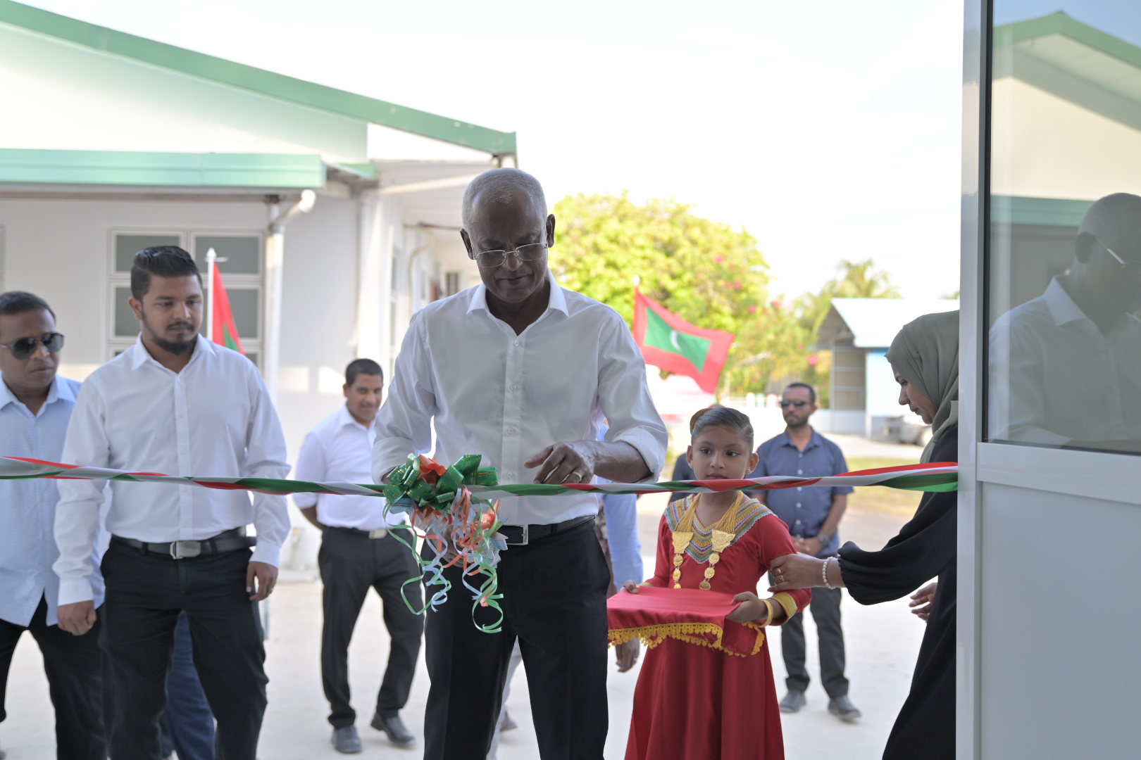 President Ibrahim Mohamed Solih arrived on Utheemu Island in Haa Alifu Atoll on Wednesday and inaugurated the newly completed extension of the island’s healthcare center and a four-classroom building for Ghaazee Bandaarain School.