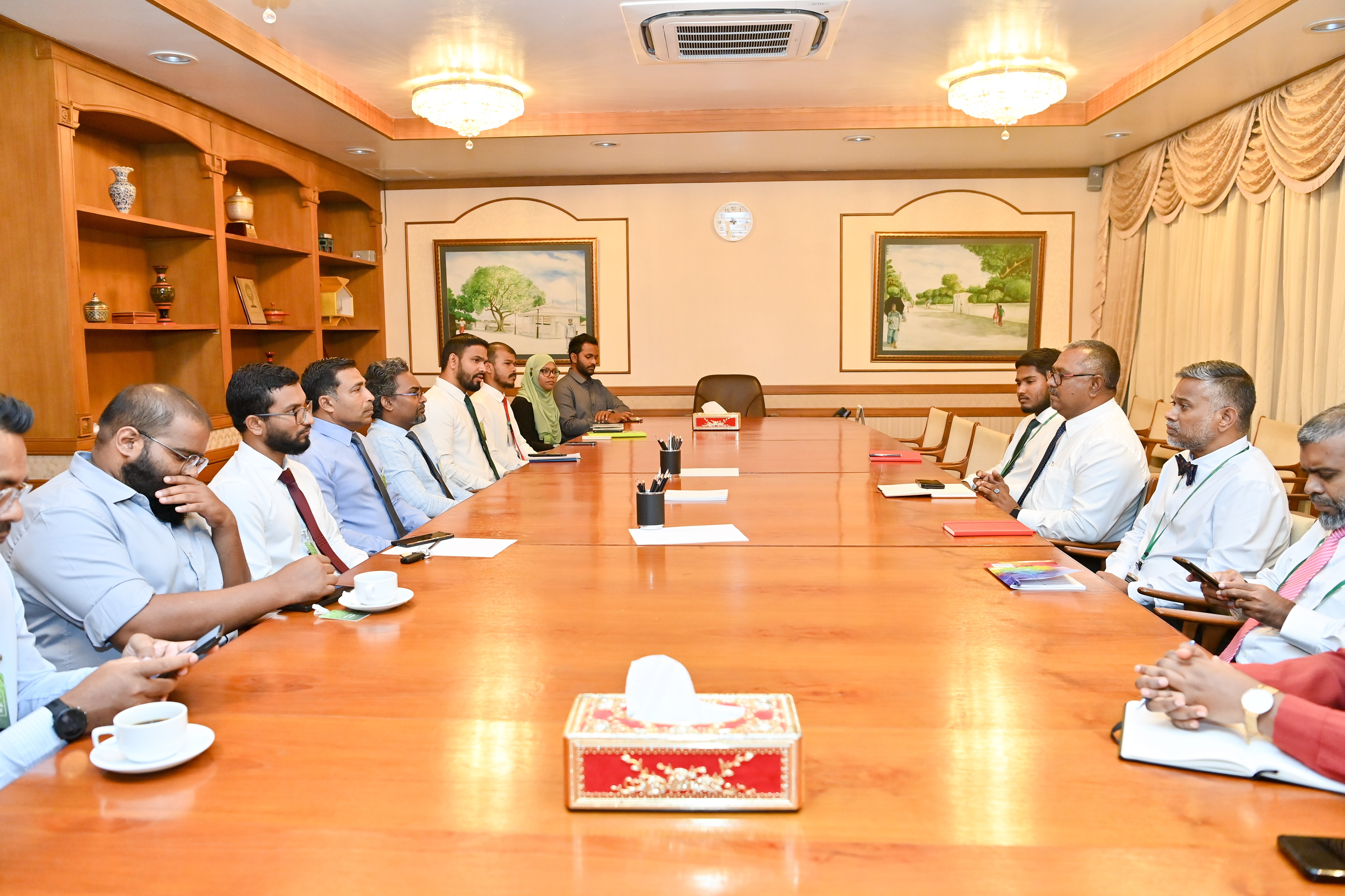 Minister at the President's Office for Strategic Communications, Ibrahim Khaleel, held discussions with the Maldives Broadcasting Commission (MBC) and the Maldives Media Council (MMC) on Monday. The meeting was held at the President's Office this afternoon.