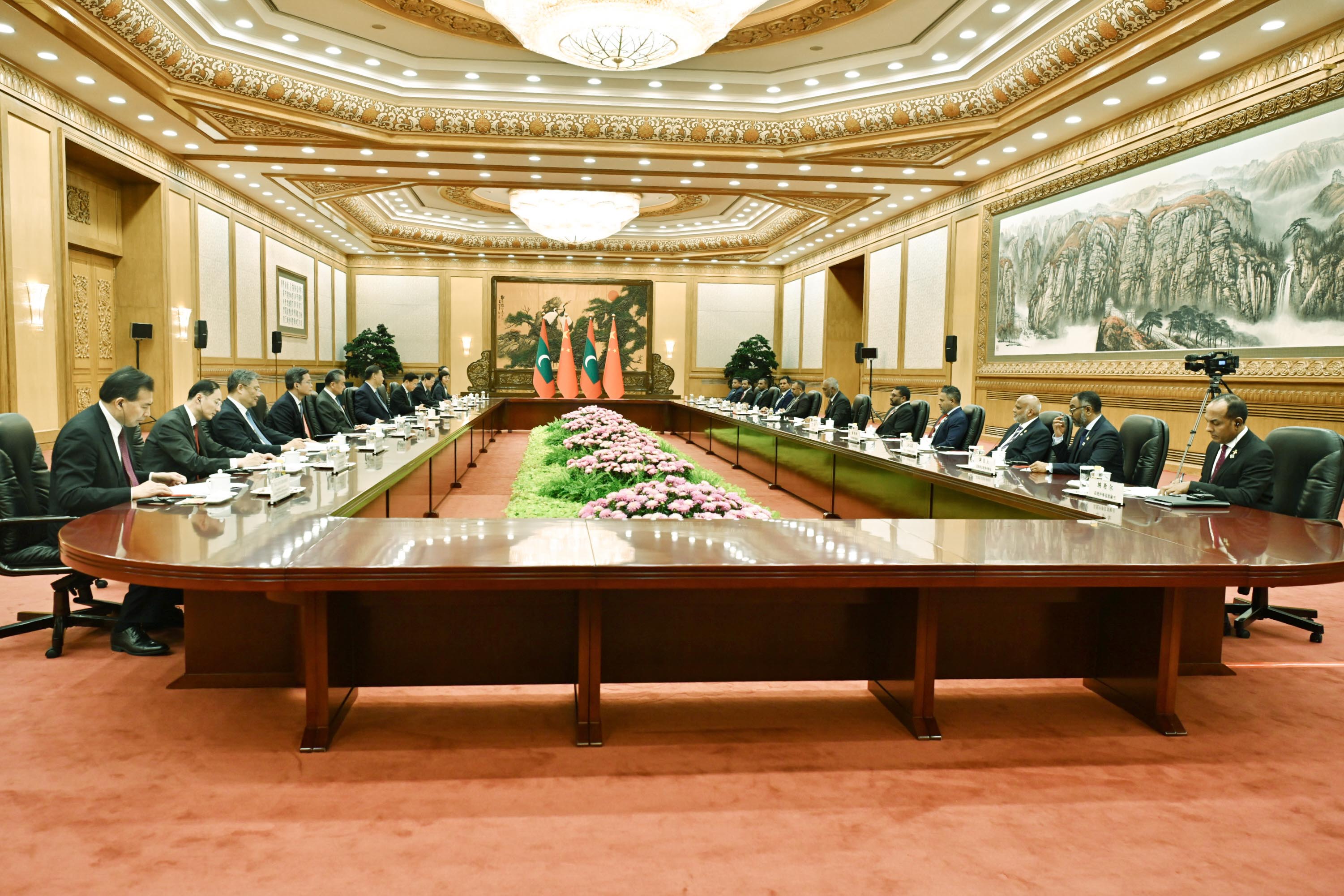 The official talks between the Republic of Maldives and the People’s Republic of China, led by President Dr Mohamed Muizzu and President Xi Jinping, respectively, took place at the Great Hall of People in Beijing.