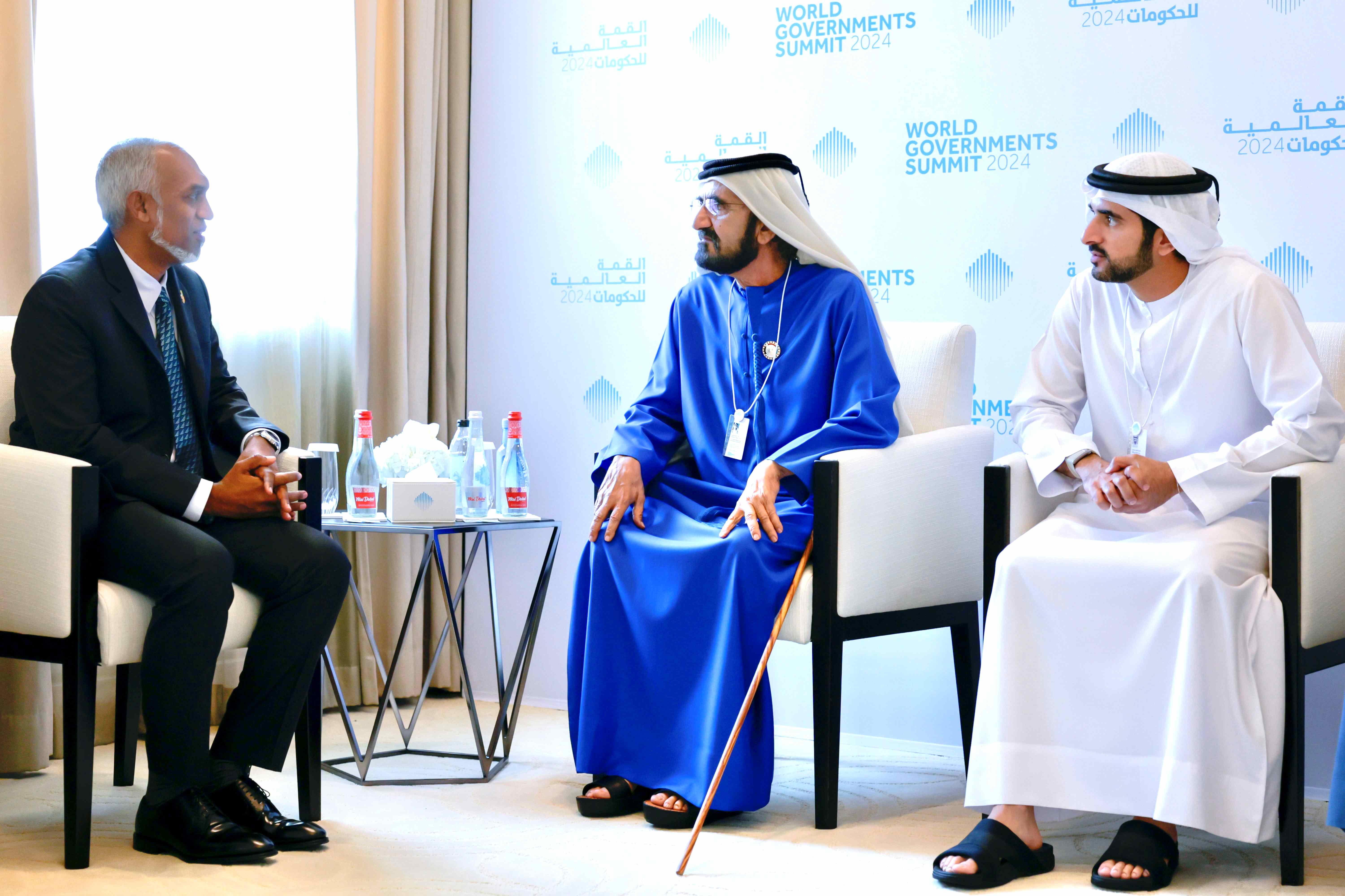H.E. President Dr Mohamed Muizzu met with His Highness Sheikh Mohammed bin Rashid Al Maktoum, Rashid Al Maktoum, Vice President, Prime Minister, and Minister for Defence of the United Arab Emirates, Ruler of Dubai, today. The meeting was held on the sidelines of the World Government Summit 2024.