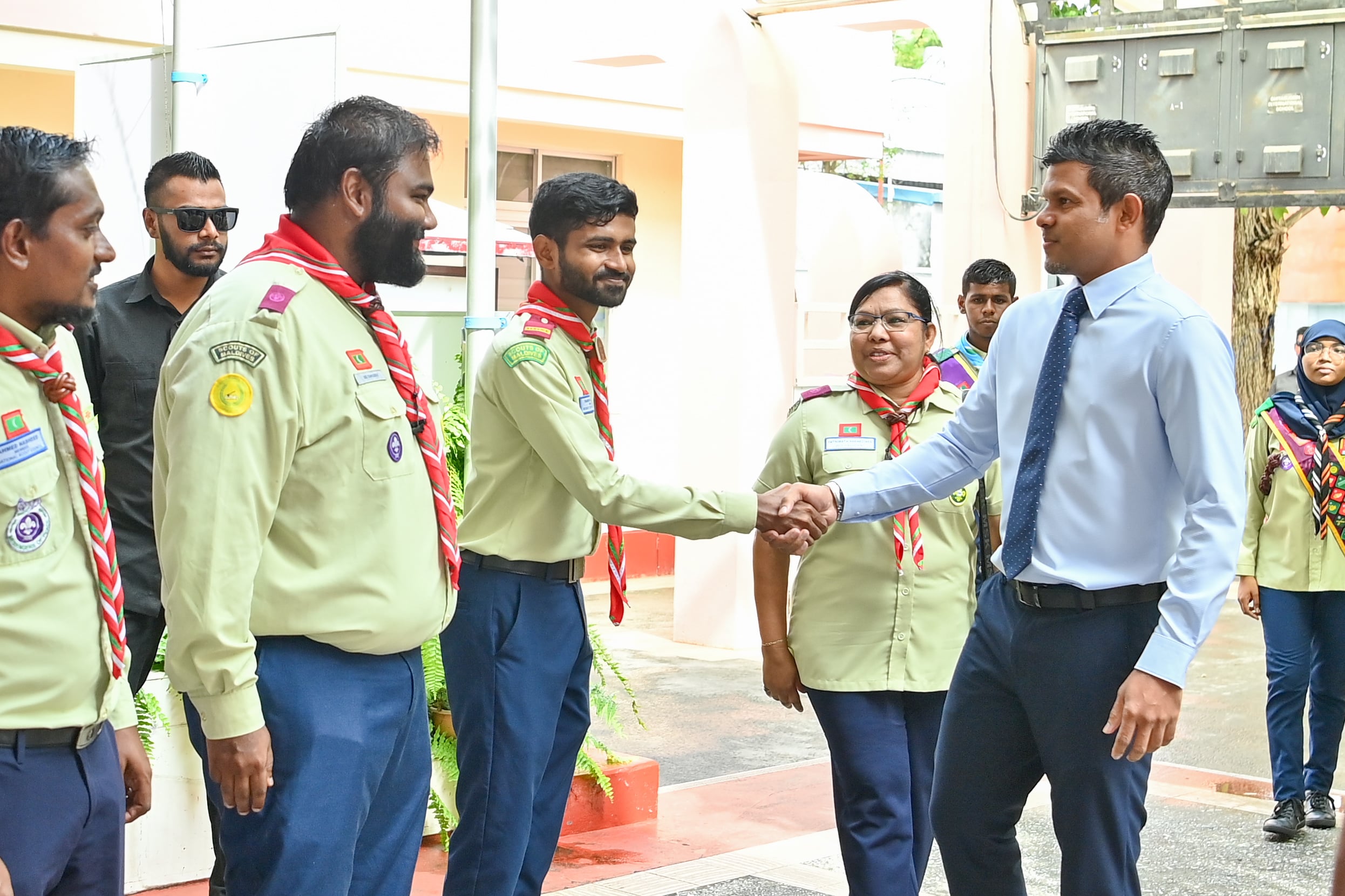 At the meeting held at Ghiyasuddin International School this morning, the Vice President wished good luck to the scouts partaking in the Jamboree, emphasizing the importance of upholding Maldivian values while representing the nation abroad. The Vice President also stressed the importance of maintaining good behavior, ethics, friendship, and togetherness for the scouts while being mindful of their prayers, time management, and respect for superiors.