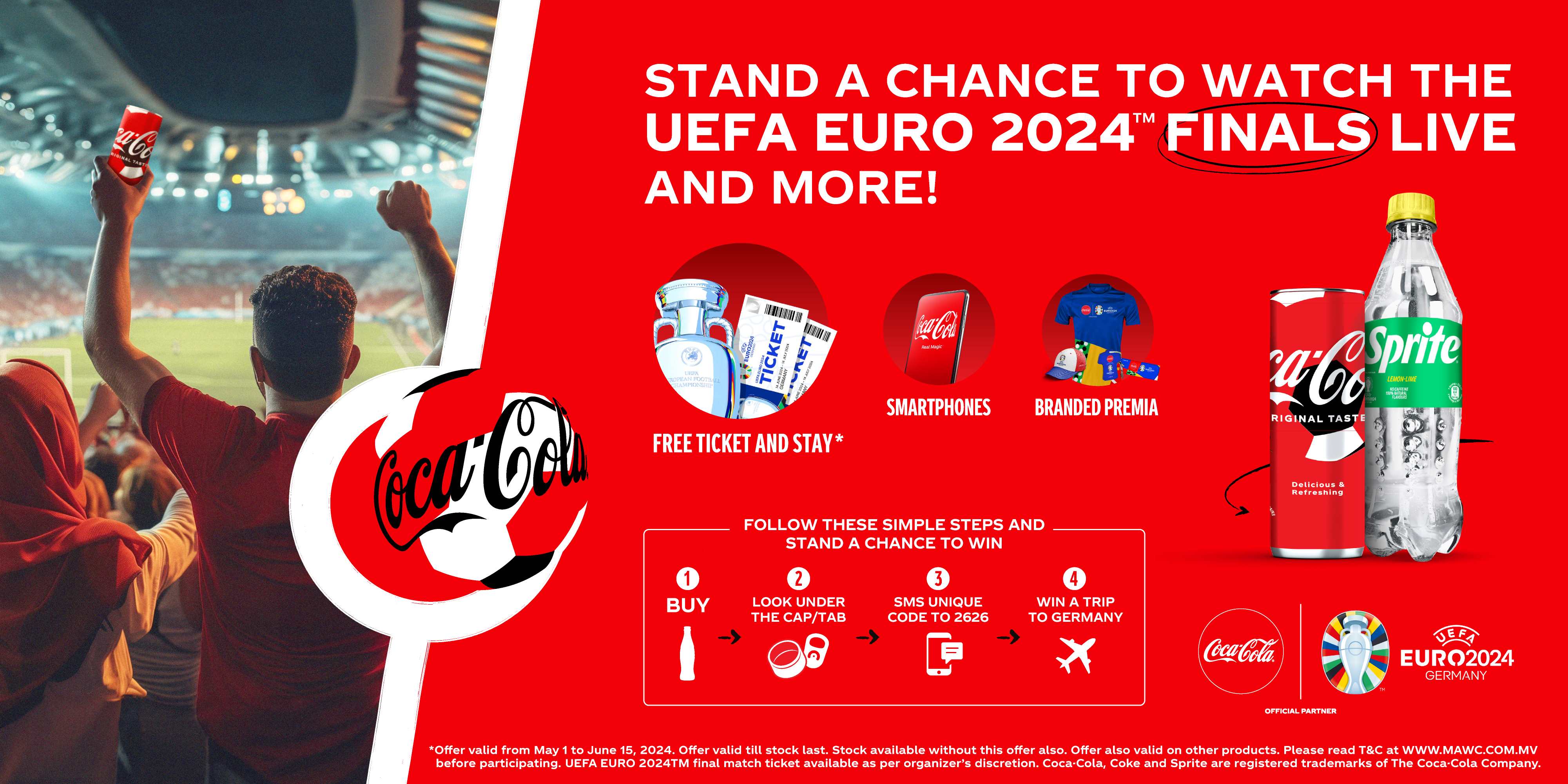 Coca-Cola is delighted to announce its official partnership with UEFA EURO 2024, launching an exciting promotional campaign that offers football enthusiasts in the Maldives the chance to experience the Finals live in Berlin, Germany.