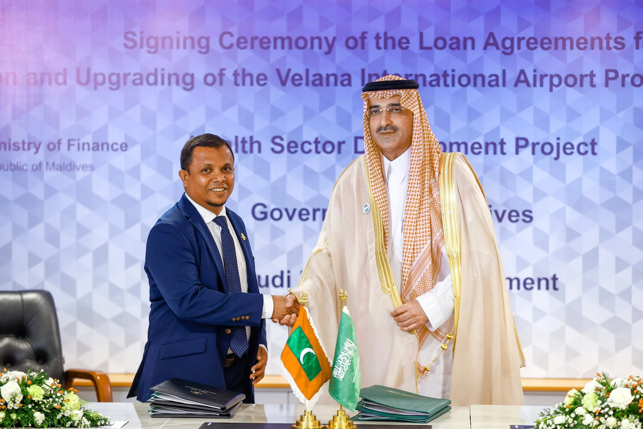 The agreements were formalized between the Government of Maldives and the Saudi Fund for Development, with Dr. Mohamed Shafeeg, Minister of Finance, signing on behalf of the Maldivian government. Representing the Saudi Fund for Development was its Chief Executive Officer, H.E. Sultan bin Abdul Rahman Al-Marshad.