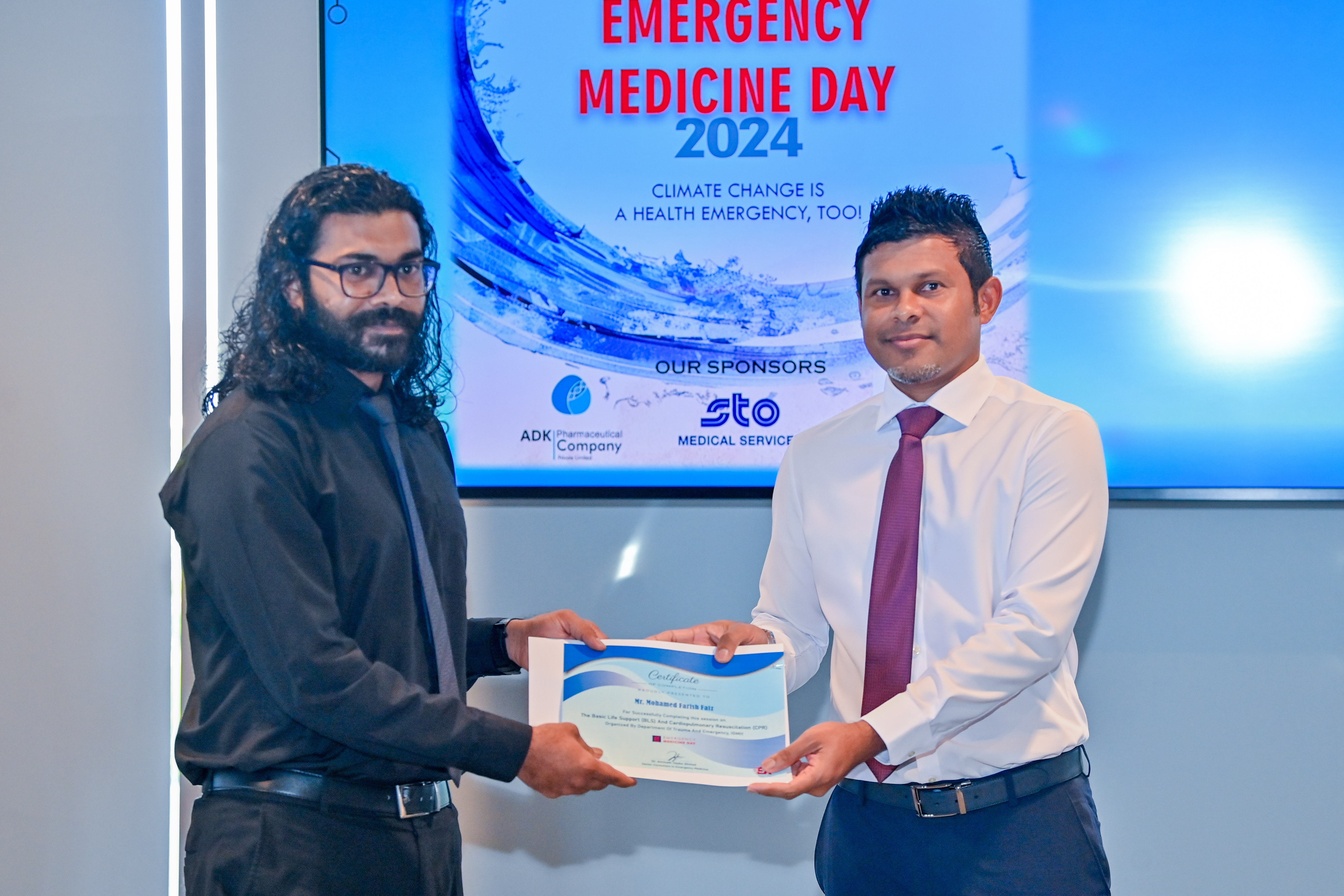 At today’s event, a video presentation showcasing the development of emergency medicine in the Maldives was displayed. In addition, a Cardiopulmonary Resuscitation (CPR) demonstration followed by a 30-minute hands-on CPR practice session was conducted. The Vice President also presented certificates to those who completed the CPR training.
