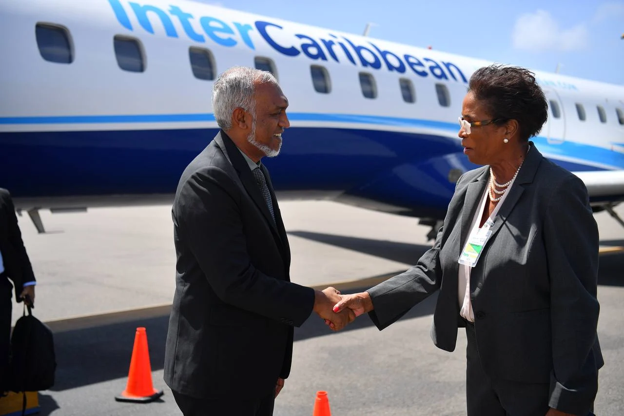 President Dr. Mohamed Muizzu extended his heartfelt gratitude to the Prime Minister of Barbados, the Hon. Mia Amor Mottley, SC, M.P., and the Government of Barbados for their exceptional hospitality during his stopover in Barbados today.